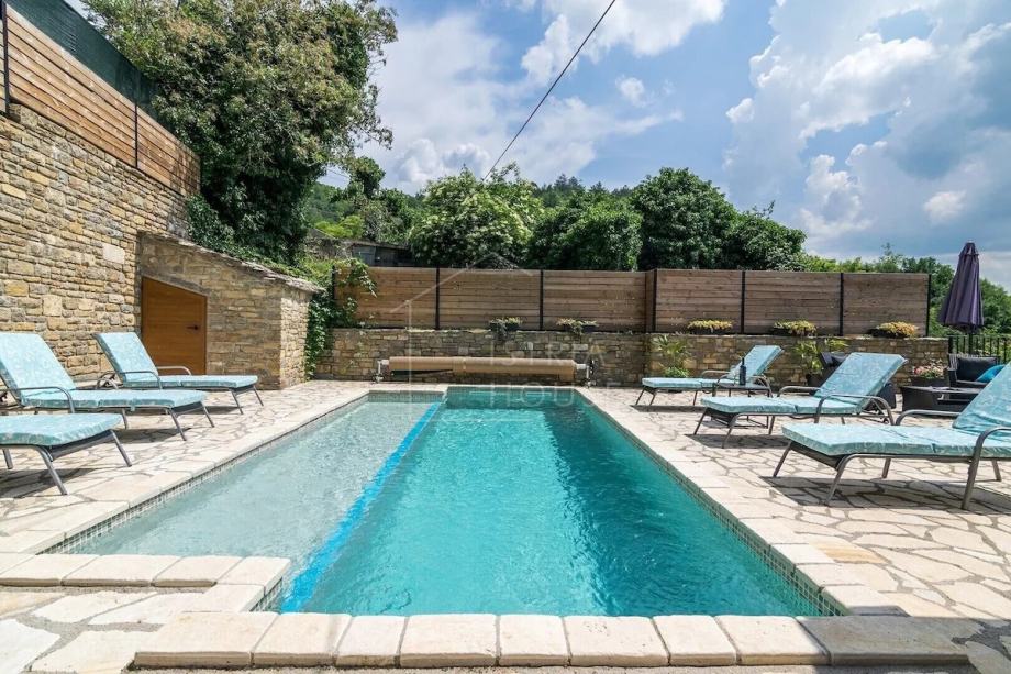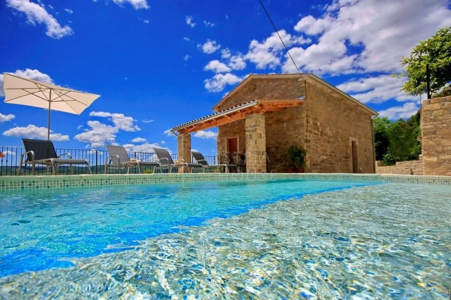 Prodaje se istarska kamena kuća s bazenom s lijepim panoramskim pogledom na Motovun. Kuća se nalazi na rubu malenog naselja što garantira potpuni mir i privatnost. Pristup nekretnini osiguran je asfaltiranom cestom, a Motovun je udaljen samo par minuta vožnje autom.
