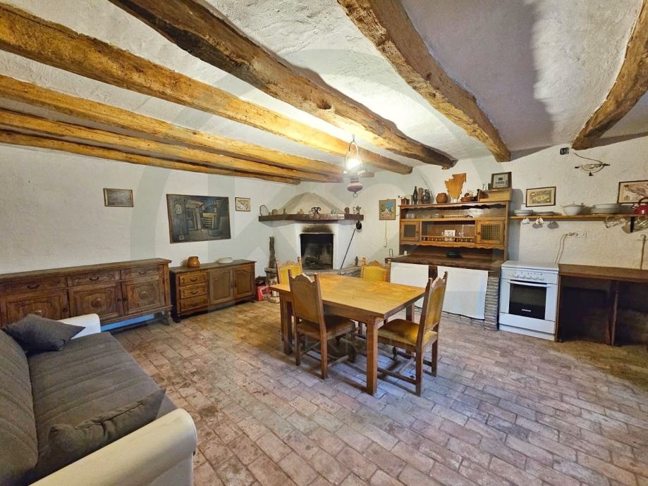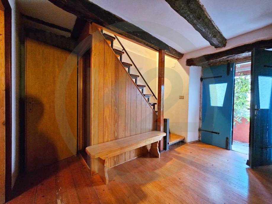 U prizemlju kuće nalazi se konoba sa malom kuhinjicom i kaminom te direktnim izlazom na dvorište a postoje i unutarnje stepenice, na prvom katu se nalazi glavni ulaz u kuću, hodnik, soba sa kuhinjom i kupaonica sa WC-om te stubište.