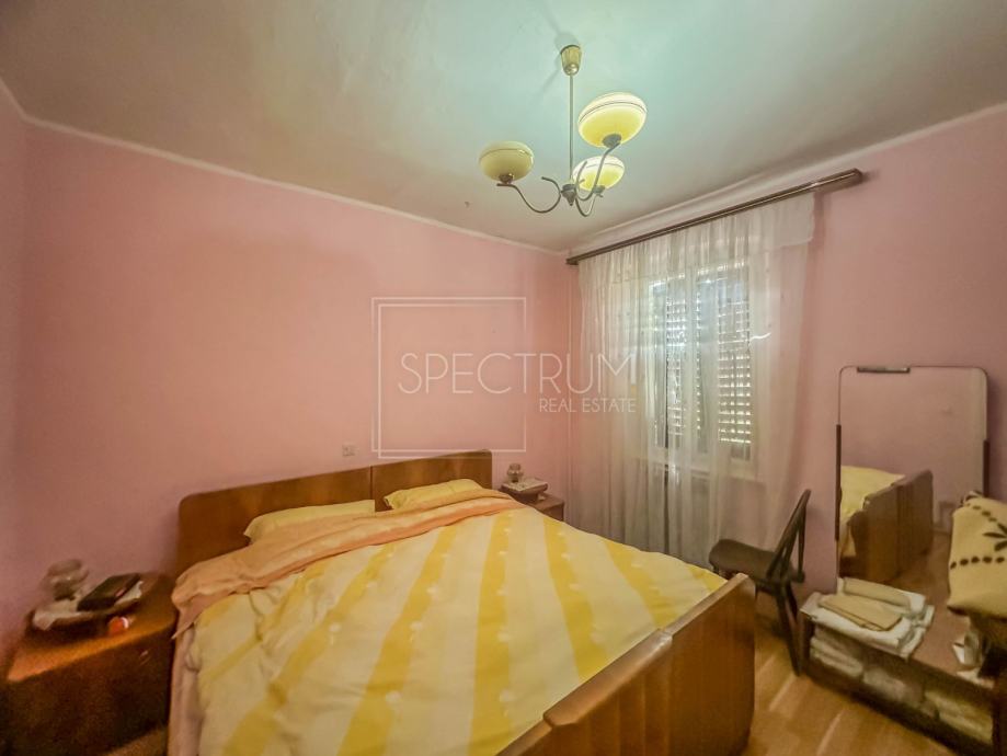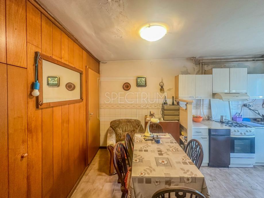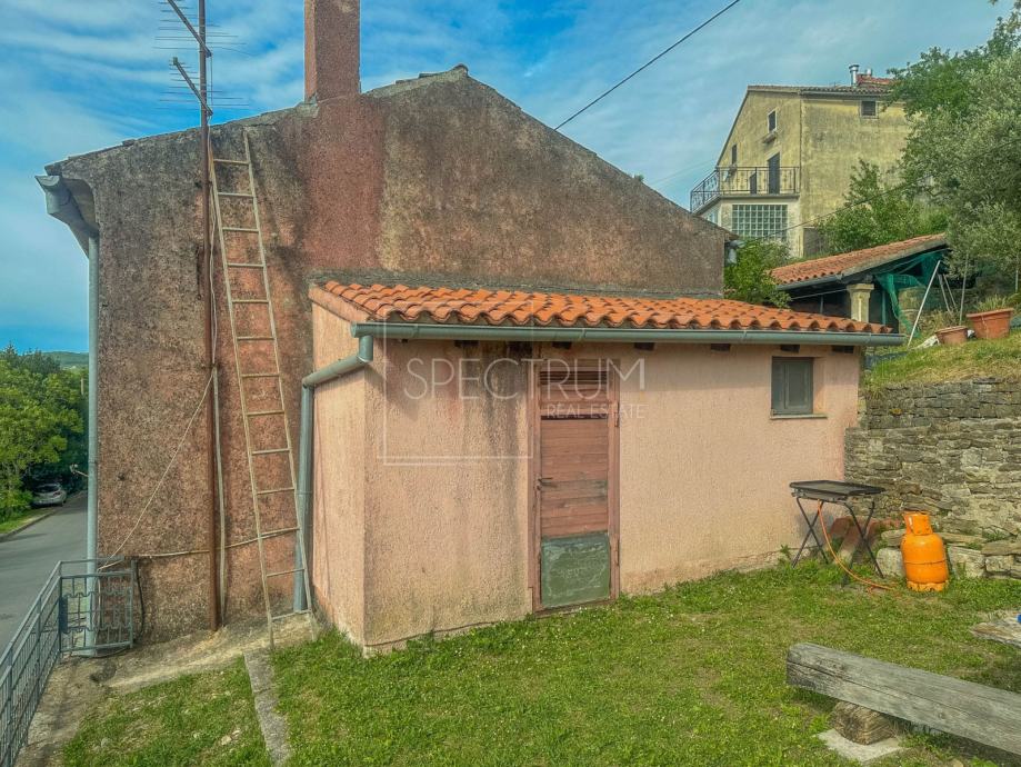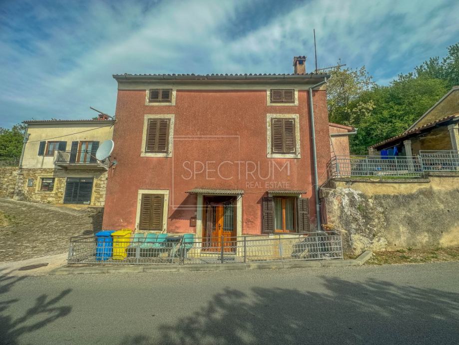 Kuća se proteže kroz prizemlje, 1.kat i potkrovlje. Površina kuće iznosi 153 m2. U prizemlju se nalazi dnevni boravak, kuhinja sa blagovaonicom, kupaonica i hodnik. Stepenicama se dolazi na 1.kat gdje se nalaze 2 prostrane spavaće sobe, wc i hodnik. U potkrovlju se nalazi prostor koji se može višenamjenski urediti, ovisno o želji novog vlasnika. S obzirom na visinu potkrovlja, taj se prostor može čak i preurediti u dodatnu spavaću sobu. Sa kuće se pruža lijepi i otvoreni pogled na istarski krajolik i brežuljke. Kuća se grije putem centralnog grijanja na lož ulje, a kuća ima i dimnjak. Kuća zahtjeva određenu adaptaciju. Ispred ulaza u kuću se nalazi prostor idealan za uživanje na otvorenome. Preko puta kuće nalazi se vrt na korištenje. Pored vrta se nalazi i prostor za parking.