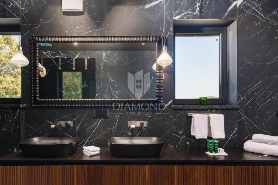 Već pri prvom pogledu očarava svojim arhitektonskim skladom i pažljivo biranim detaljima vila je dizajnirana za hedoniste, ljubitelje estetike i privatnosti. Unutrašnjost oduzima dah, raskošni interijeri s dizajnerskim namještajem, kuhinja opremljena Gaggenau aparatima, kamin koji grije prostor toplinom i stilom te prozori koji otkrivaju bajkovit pogled na Motovun i okolnu prirodu.