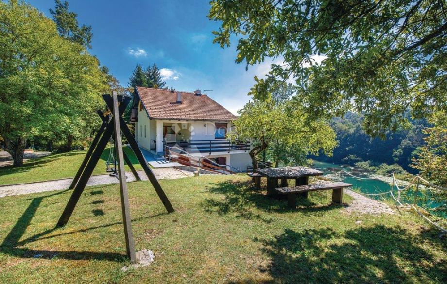 Na prodaju je kuća ukupne površine od 260m2, smještena u predivnom okruženju uz rijeku Mrežnicu, udaljena samo 50 metara od slapova. Nalazi se na parceli od 3500 m2, s položajem iznad same rijeke Mrežnice.