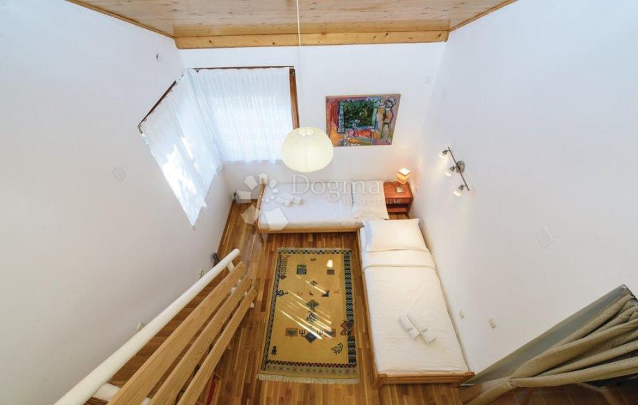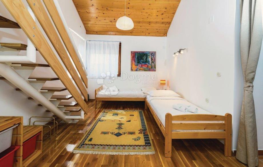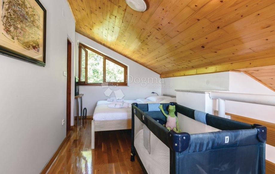 Kuća, okružena zelenilom, savršena je kao vikendica ili kao investicija za turistički najam. Posjeduje uredno vlasništvo, a uz nju su priloženi vlasnički list, građevinska i uporabna dozvola.