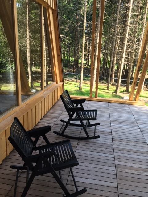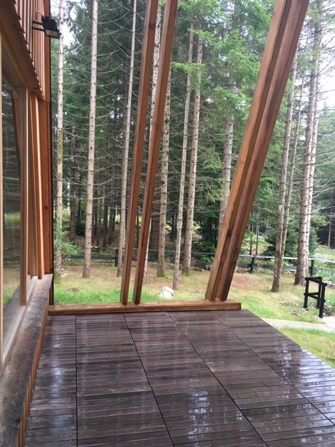Vikendica obiluje velikim staklenim stijenama ite krovnim prozorima koje osiguravaju dnevnu svjetlost kao i pogled u prirodu.