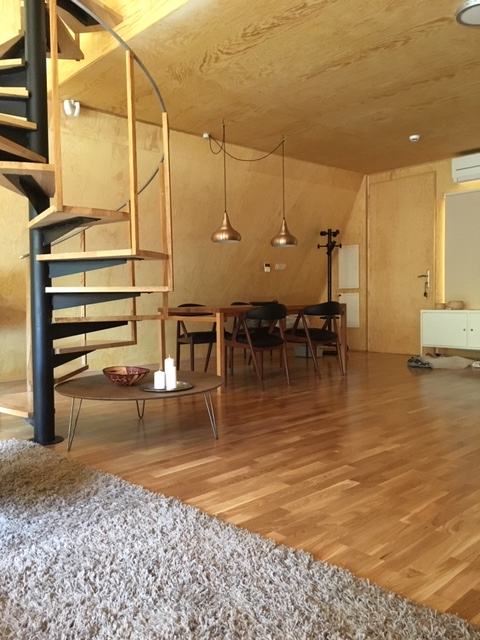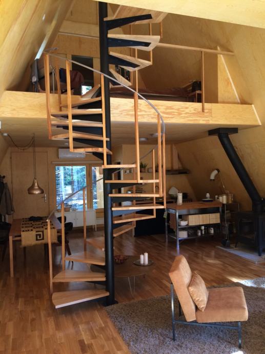 Arhitektura vikendice inspirirana je dizajnom suvremenih američkih planinskih kuća s svestranom upotrebom bora kao građevnog elementa uz "open space" koncept s spiralnim stepenicama.