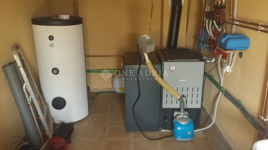 Kuća je priključena na vodovodnu mrežu, javnu rasvjetu te telefonski i internetski priključak, a posjeduje septičku jamu zapremnine 7 m³ i cisternu za vodu od 4 m³. Grijanje je riješeno centralnim sustavom na pelete za cijelu kuću. Na katu se nalazi kamin od gusa snage 11 kW koji bez problema može grijati kat i potkrovlje, čak i u slučaju nestanka električne energije, dok se u konobi nalazi dodatni veliki kamin. Fasada kuće izolirana je stiroporom debljine 8 cm, a ugrađena je PVC vanjska stolarija u boji zlatnog hrasta. Na krovu su postavljeni solarni kolektori za pripremu tople vode, povezani s Bosch solarnim spremnikom AS 300 Duo kapaciteta 300 litara, koji se zagrijava putem solarnih kolektora i kotla.