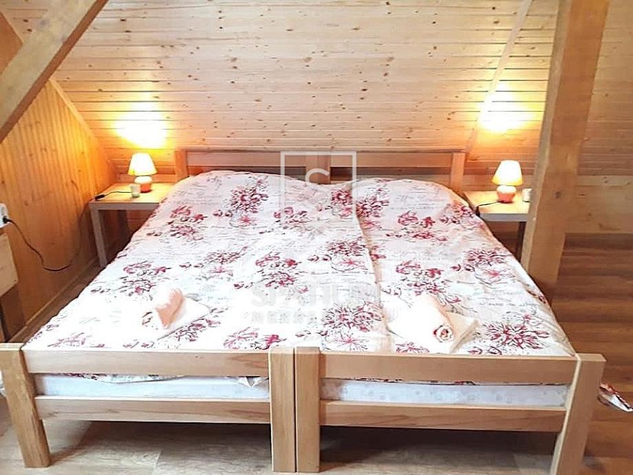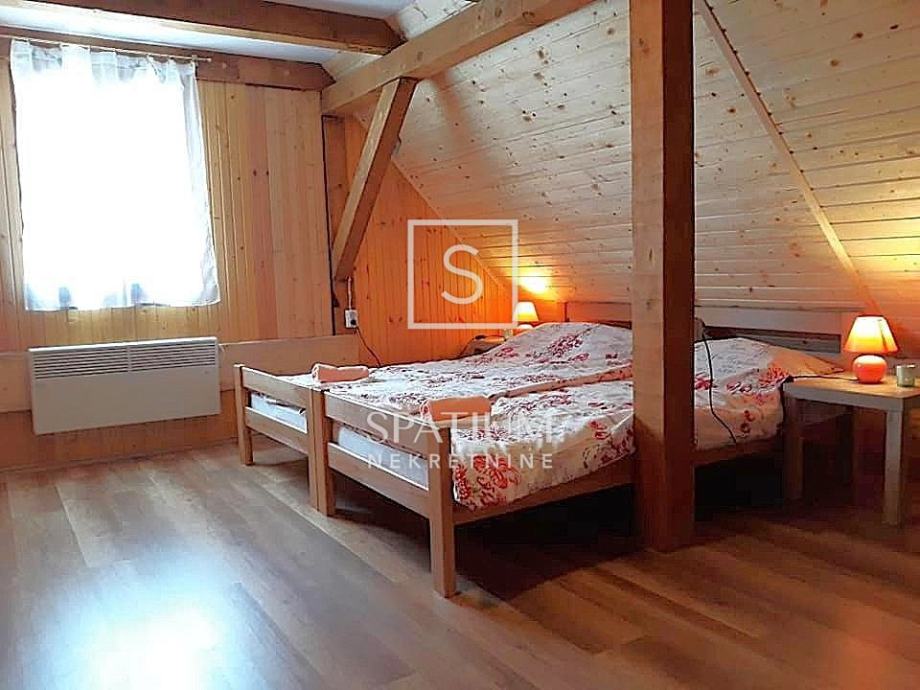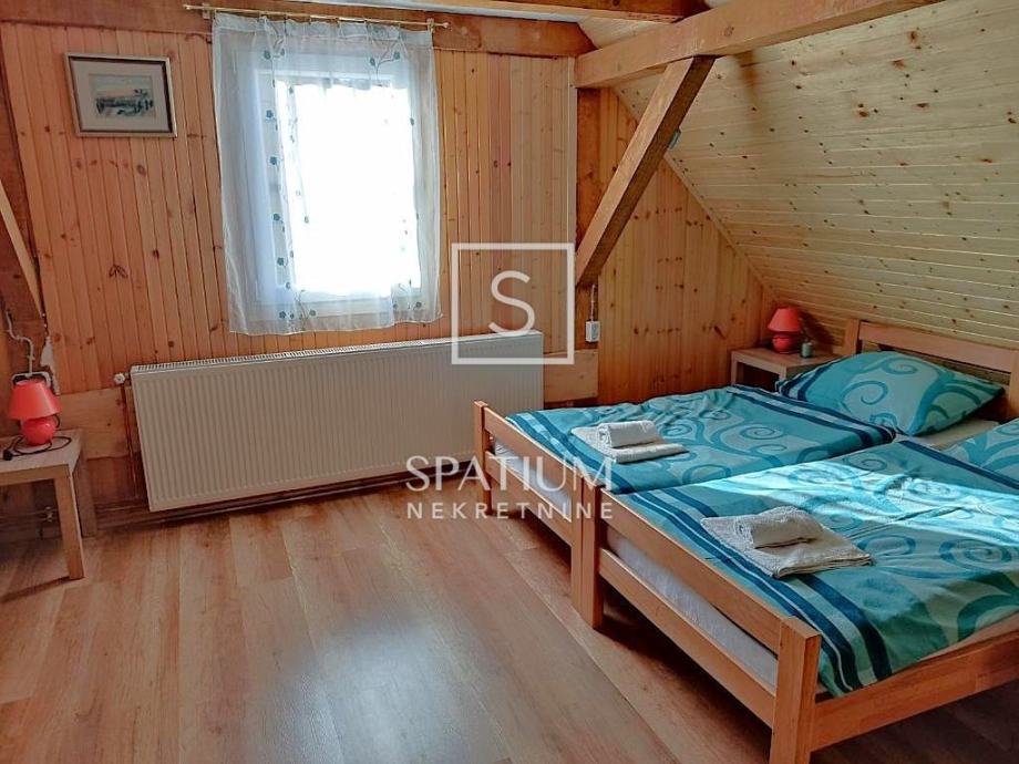 MRKOPALJ, u ponudu smo dobili autohtonu kuću površine 100 m2. Prostire na dvije etaže, u prizemlju je kuhinja s blagovaonom, dnevni boravak, kupaona i jedna soba. Na katu su dvije velike spavaće sobe i predsoblje. Promijenjena je kompletna stolarija i uvedeno centralno grijanje na pelete. Uz samu kuću na okućnici površine 371 m2 se nalazi i manji objekt koji služi kao spremište za alat te velika gospodarska zgrada površine 55m2, koja je uređena i opremljena kao konoba s kaminom. Nekretnina je kategorizirana i kao takva je idealna prilika za ulaganje u turističku djelatnost, u zimskoj tako i u ljetnoj sezoni. Udaljenost od skijališta i ostalih sadržaja je svega 100 m.