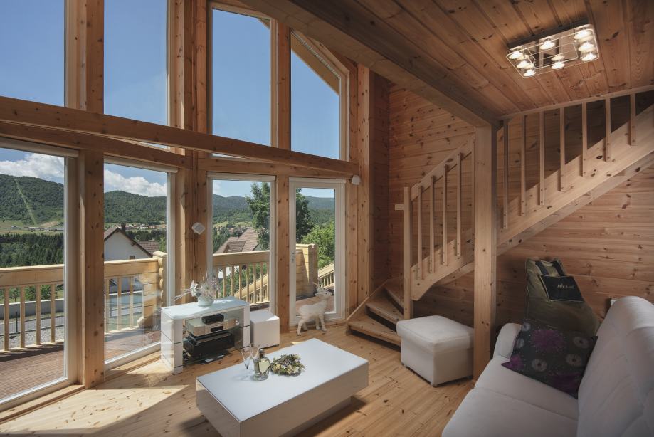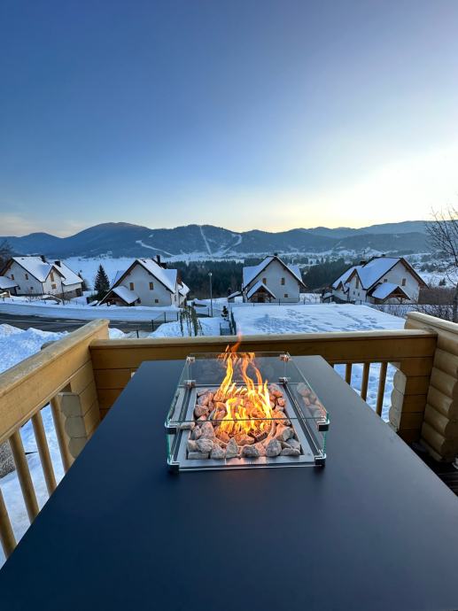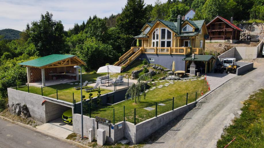 Na sunčanoj strani Mrkoplja sa pogledom na skijalište Čelimbaša nalazi se prekrasna finska drvena kuća. Kuća je izgrađena od lameliranih trupaca spororastućeg sibirskog bora(50 godina garancije) i kompletna je izolirana sa 20cm izolacije. Sastoji se od 4 spavaće sobe, 3 kupaonice, dnevnog boravka, kuhinje, galerije te vanjske terase. U sklopu kuće nalazi se i podrum/garaža te dodatna podzemna garaža za 2 automobila i vanjska sjenica.