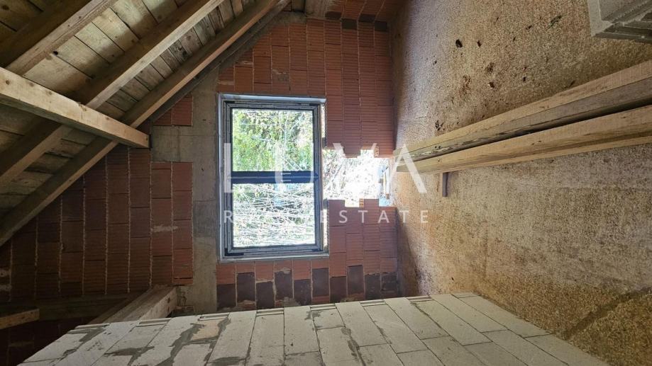 Kuća je u roh-bau fazi, s već postavljenom stolarijom i izrađenom betonskom međukatnom konstrukcijom, dok je vanjski zid građen od kvalitetne pune cigle. Svi potrebni dokumenti i dozvole su ishođeni, a postoji i mogućnost organizacije izvođača radova koji bi dovršili kuću unutar šest mjeseci.