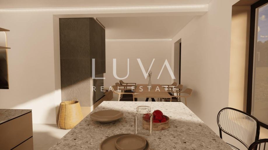 U prizemlju se nalazi ulazni dio koji vodi prema budućoj konobi – idealnom prostoru za druženje i uživanje u zimskim večerima. Unutarnje stepenice povezuju prizemlje s prvim katom, gdje je planiran otvoreni dnevni prostor s kuhinjom, blagovaonicom i boravkom, uz spavaću sobu, kupaonicu i vešeraj. Posebnu vrijednost ovom katu daje luksuzna spa oaza s jacuzzijem, tušem, wc-om i direktnim izlazom na prostranu terasu s pogledom koji oduzima dah.