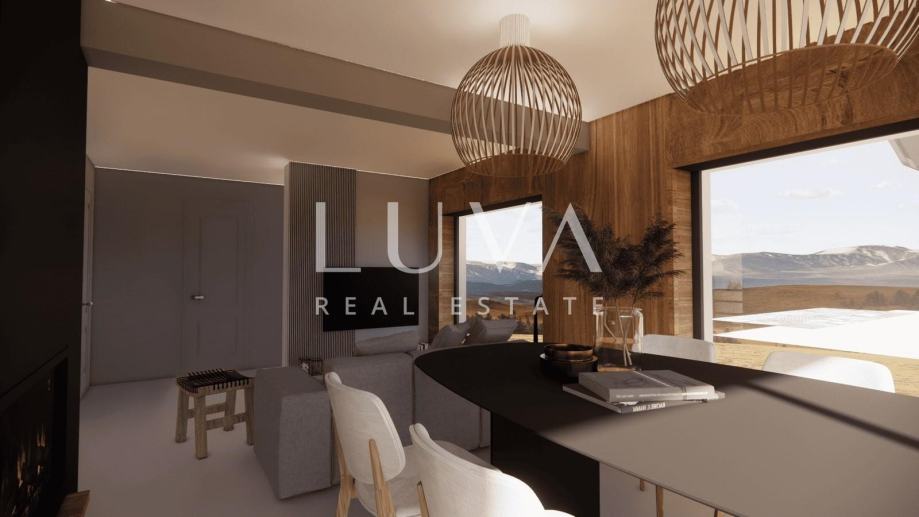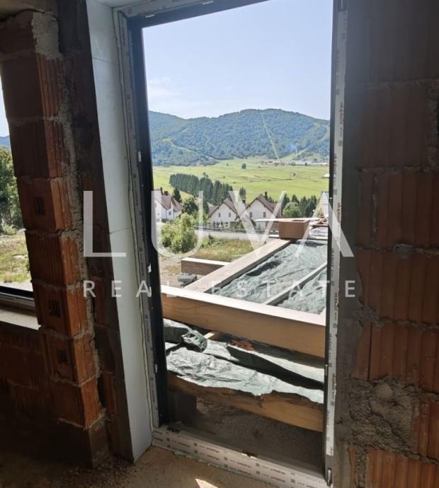 Kuća je trenutno u fazi koja kupcu omogućava da personalizira završni dizajn prema vlastitim željama – bilo da se odluči za rustikalni planinski stil ili moderan luksuzni interijer.