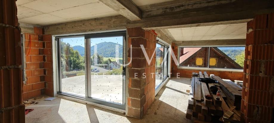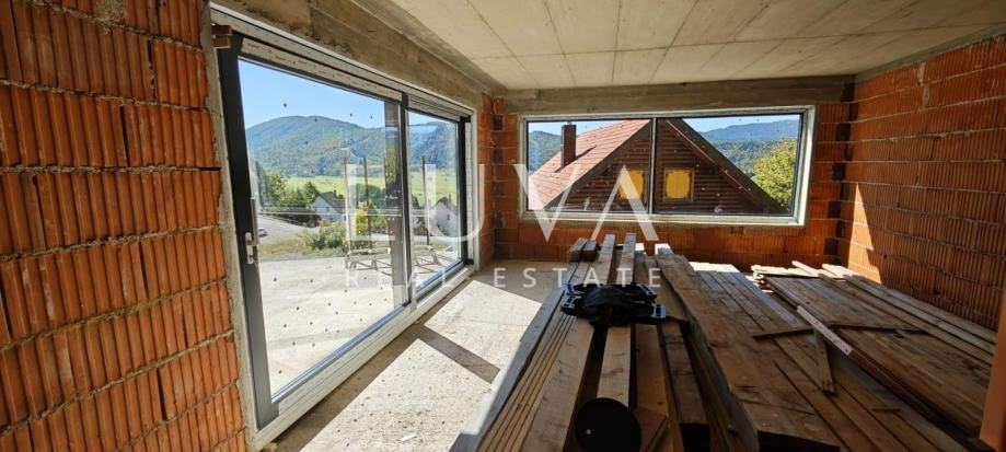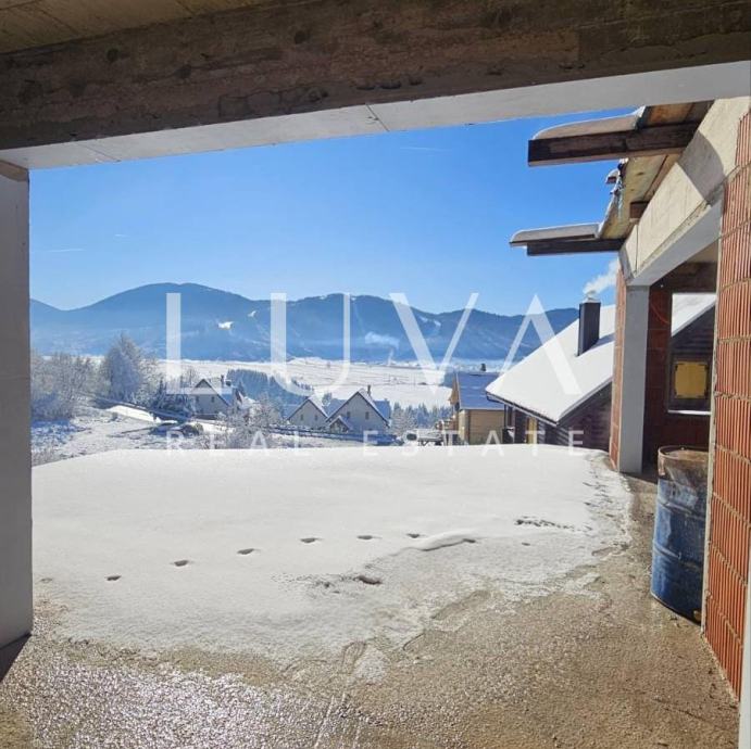 U srcu netaknute prirode Gorskog kotara, u idiličnom mjestu Mrkopalj, prodaje se moderna kuća u izgradnji površine 335 m². Smještena na lokaciji s impresivnim pogledom na skijalište Čelimbašu, ova nekretnina nudi izniman potencijal – bilo kao investicija u turistički projekt, bilo kao privatna kuća za odmor u planinskoj oazi mira.