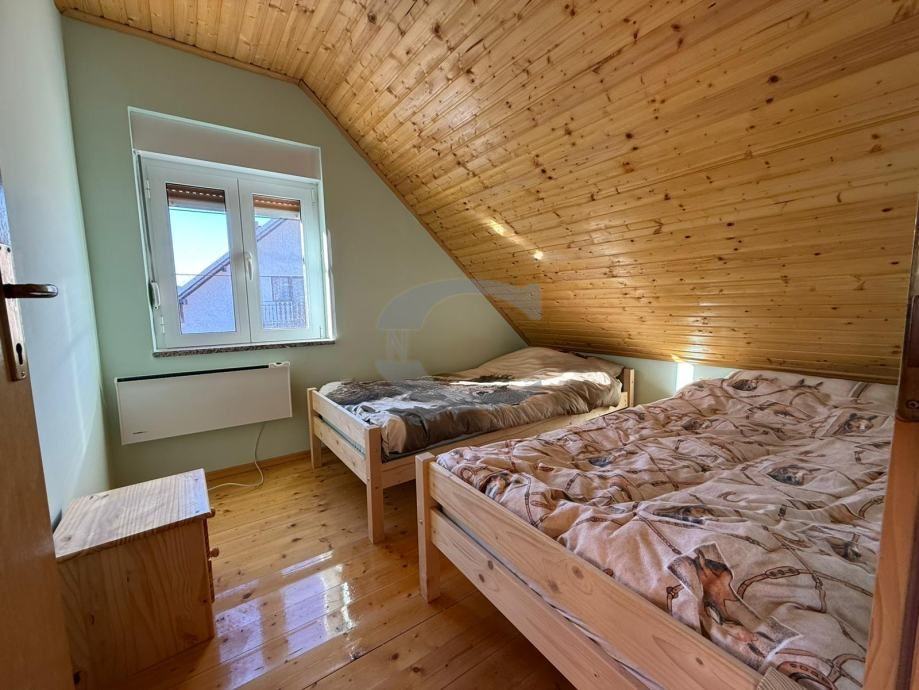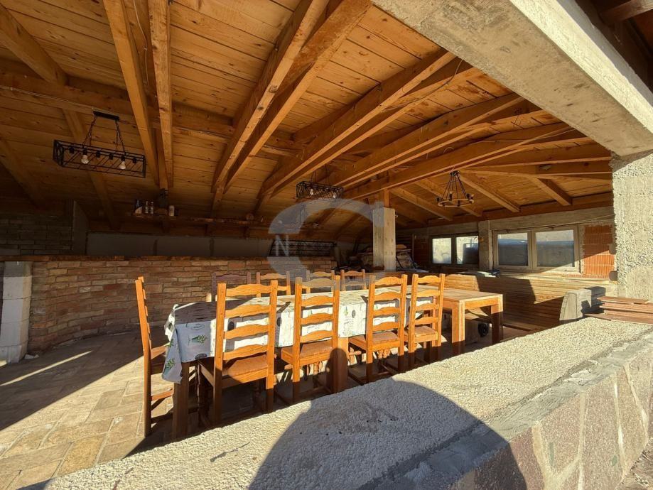 Prodaje se nekretnina koja ima 300 m2 stambene površine. U kući je 4 apartmana, 16 ležaja ,5 kupaona, ispod kuće je konoba i u produžetku kuće natkrivena terasa od 75 m2, i u dvorištu je iskopana rupa za bazen. Ima 1960m2 okućnice.