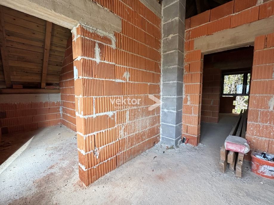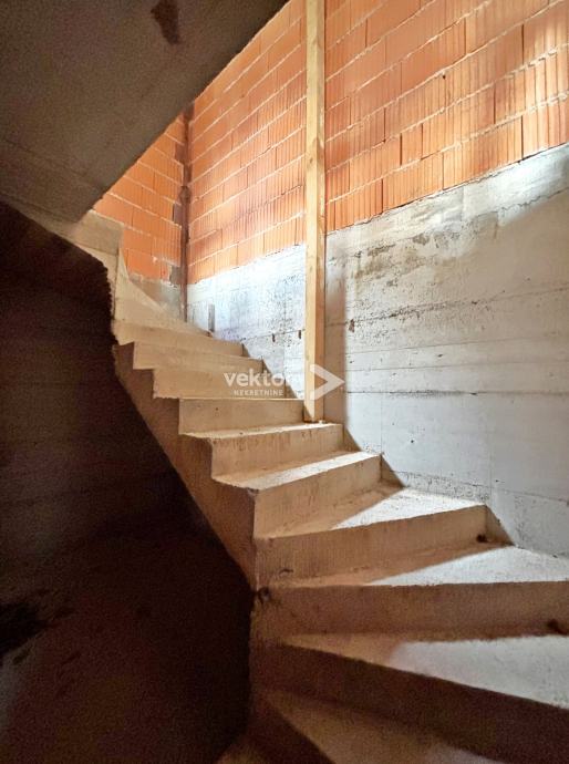 Kuća je razvedena na tri etaže. U suterenu se nalazi kotlovnica, wc i velika konoba s kuhinjom i kaminom. Unutarnje stepenice vode na prizemlje gdje je jedna spavaća soba, spremište, kupaona, kuhinja, dnevni boravak sa blagovaonicom te veliki wellness koji je povezan sa vanjskom terasom.
