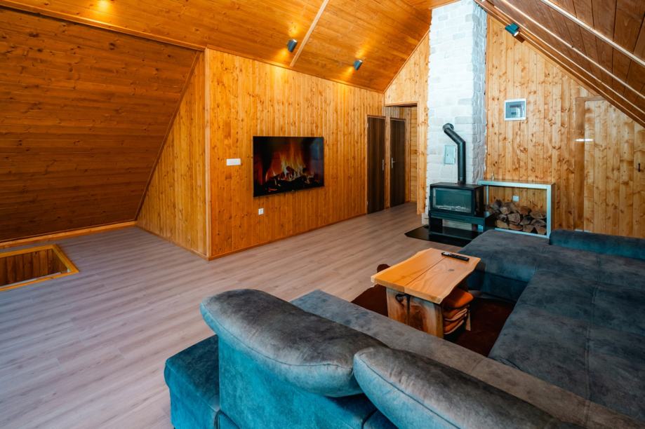 Visoko potkrovlje donosi dodatni dnevni prostor s posebnim ugođajem, toplo uređen boravak za opuštanje, tri dodatne spavaće sobe i ugodna čitaonica s pogledom na prirodu. Ova etaža stvara osjećaj privatnosti i odmora, idealna za večernja opuštanja ili rad od kuće.