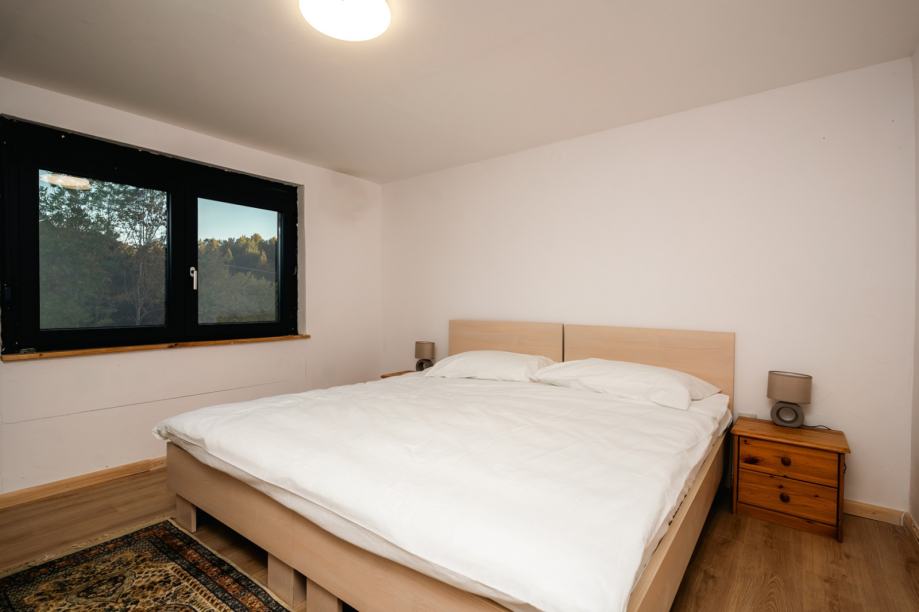 U prizemlju smješten je dnevni boravak povezan s kuhinjom i blagovaonicom, čime se stvara prozračan i funkcionalan prostor za svakodnevni život. Tu su i dvije spavaće sobe, savršene za članove obitelji ili goste.