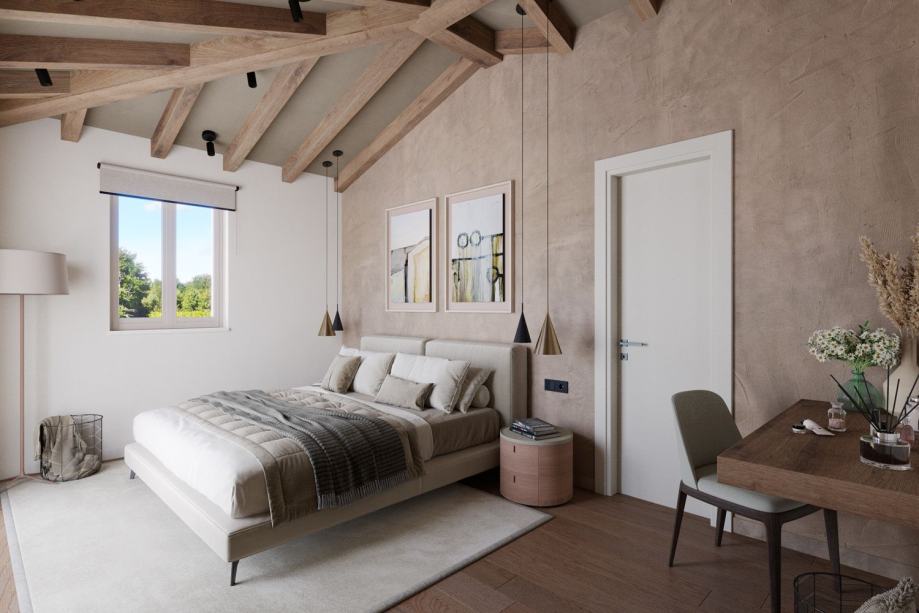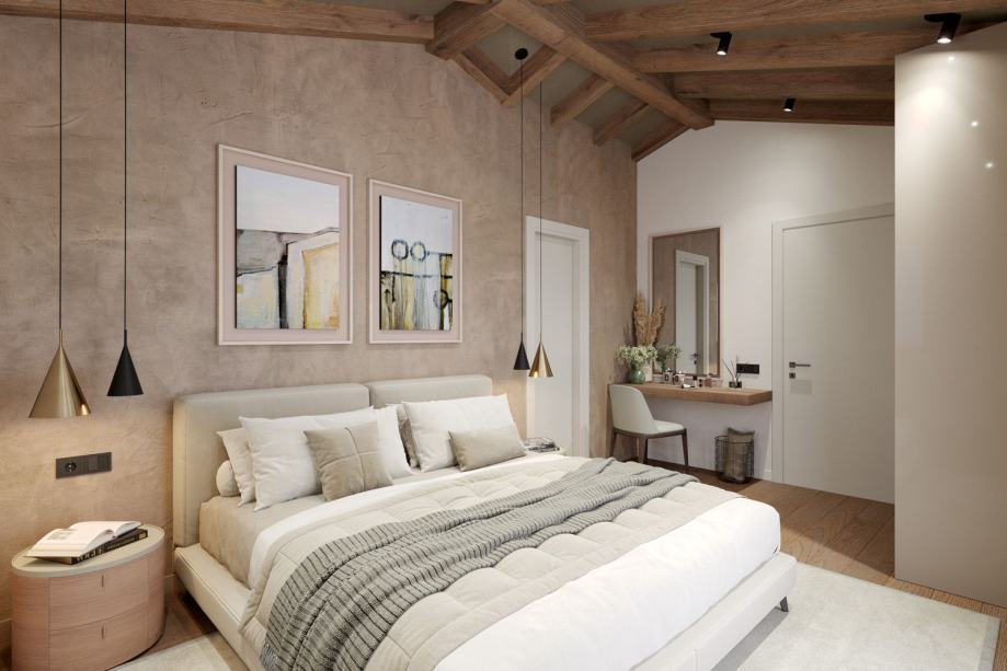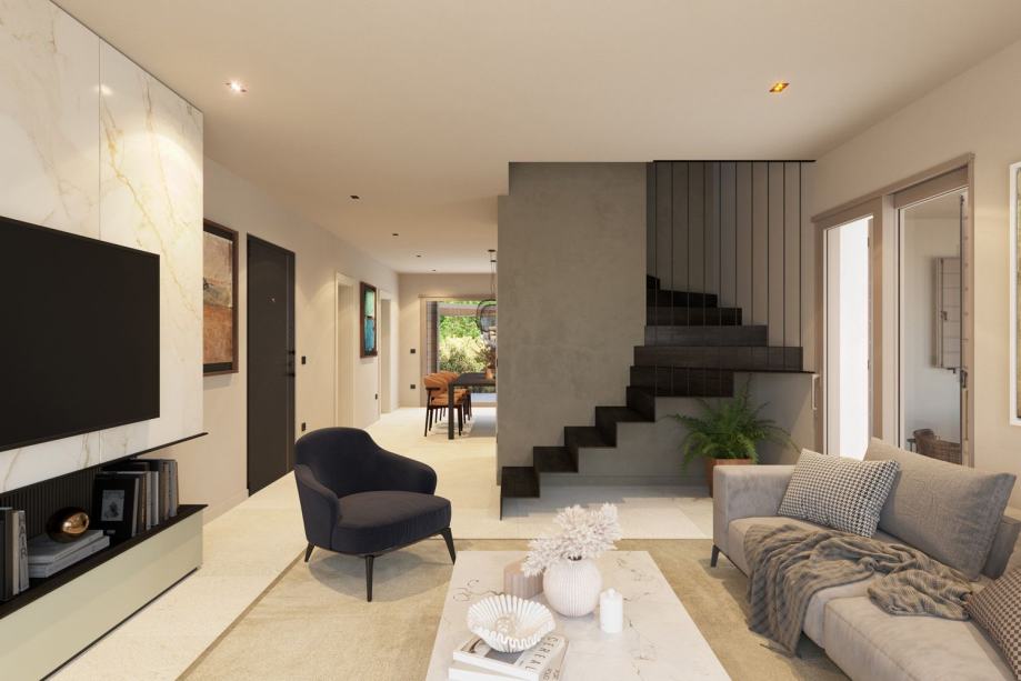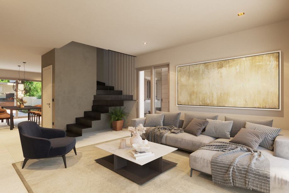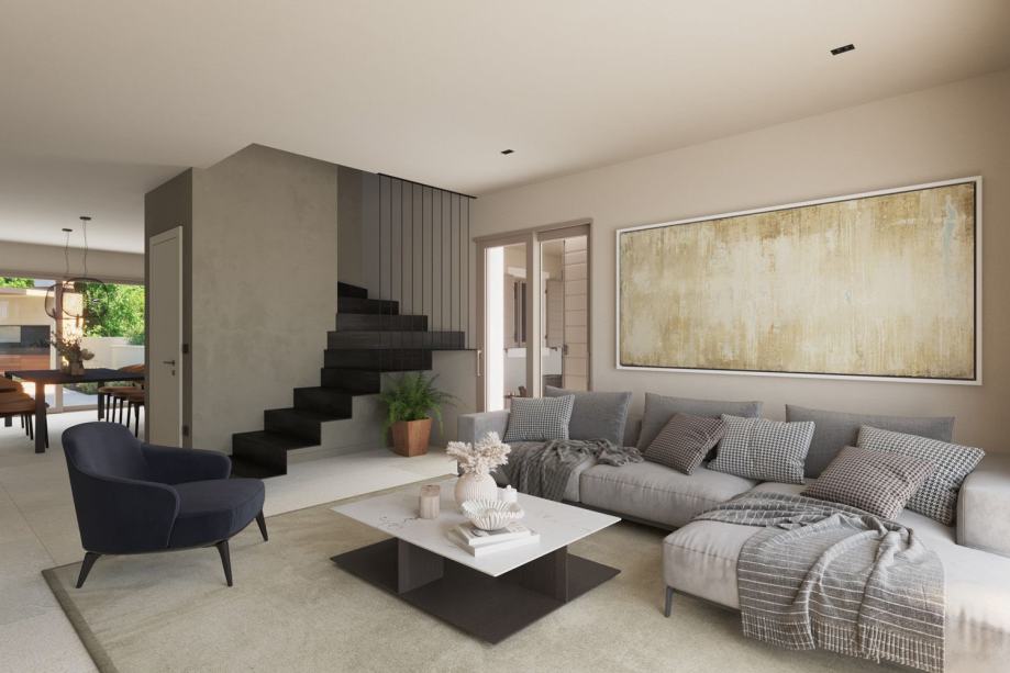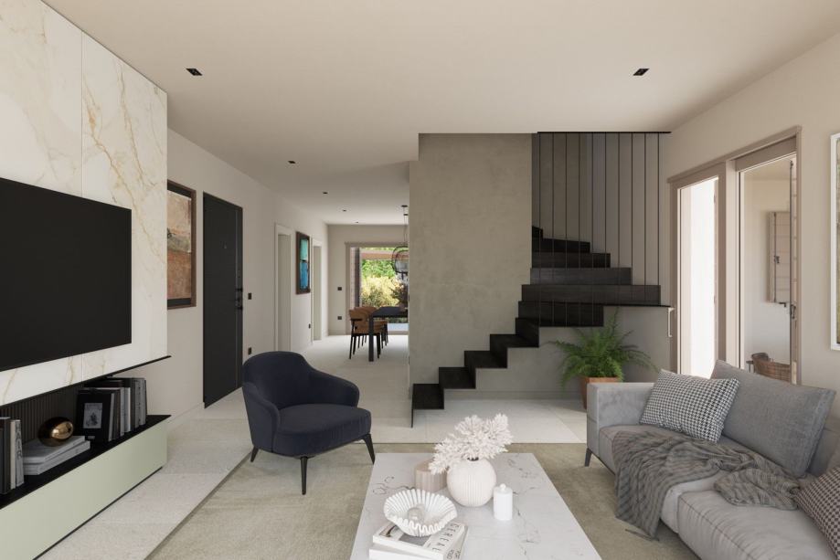 Svaka kuća ima 131 m2 i sastoji se od kuhinje sa blagovaonom i dnevnog boravka , 3 spavaće sobe svaka sa svojom kupaonom i ogromnom terasom na katu sa pogledom na more.