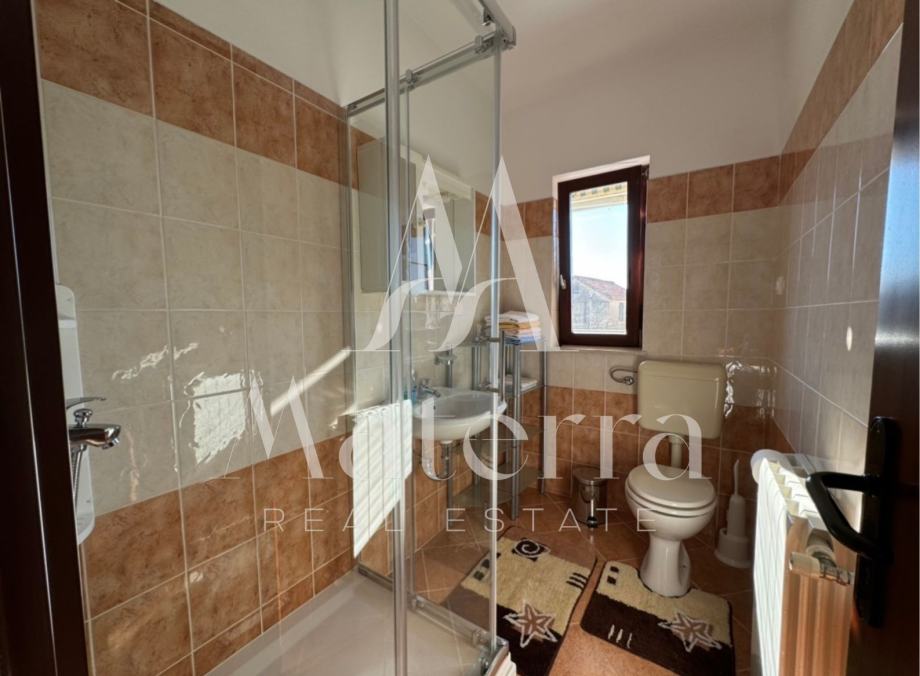 Na prodaju je dvosoban stan na 1. katu veličine 80,05 m2 koji se nalazi u održavanoj zgradi sa 4 stana. Zgrada ima fasadu sa izolacijom. Stan se nalazi na 400m od centra Murtera i svih sadržaja. Istome pripada 1 parking mjesto.