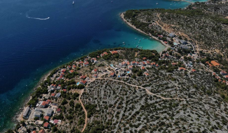 Na samom rubu urbanizacije ,170 m zračne linije od mora prodaje se poljoprivredno zemljište ukupne površine 1669 m2. Teren je pravilnog oblika i nalazi se na mirnoj lokaciji. Sa terena se pruža prekrasan panoramski pogled na more i Kornati. Do prve plaže je cestovnim putem 850 m2. Pristupni put je jednim djelom asfaltiran, a ostatak je makadamski put.