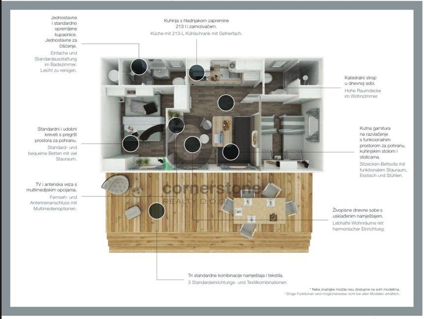 Na prodaju 5 Mobilnih kućica Adria S-line iz 2016. godine. Dimenzije 7,5 x 4,0 m.Kućice su na prodaju kompletno opremljene i spremne za korištenje i/iliiznajmljivanjeMobilne kućice se nalaze u kampu Jezera na otoku Murteru (http://www.jezeravillage.com). Kućice je potrebno izmjestiti na drugu lokaciju, jer ne postoji mogućnost preuzimanja postojećeg ugovora o najmu paušala, kao niti potpisivanje novog ugovora sa kampom. Kućice se moraju izmjestiti iz kampa u slučaju kupnje tijekom listopada 2025. Organizacija demontaže i prijevoza je na kupcu.Svakase kućica sastoji od kuhinje, blagovaonice sa dnevnim boravkom(Kauč/krevet na razvlačenje za dvije osobe), 2 spavaće sobe (1 krevet samadracem: 200x160 + 2 ležaja sa madracima : 200x80), 2 kupaonice satoaletom i tušem, te velike prostrane natkrivene terase po cijelojdužini kućice 7,0 x 3,0 m. Kapacitet svake kućice : 6 osoba. U cijenu svake kućice također ulazi i :Klima uređaj (inverter, hlađenje/grijanje), TV sa satelitskom antenom,hladnjak, štednjak sa napom, Kuhalo za vodu, mikrovalna pećnica, posuđe(lonci, tave, tanjuri, pribor za jelo, šalice , čaše...), električniroštilj, komarnici na svim prozorima, LED zidne svjetiljke za čitanje,stol i stolci za blagovaonicu,Natkrivena terasa dim. 7,0x3,0mStol i 6 stolaca za terasu2 ležaljke za terasuZavjese za terasuJastuci, pokrivači za 6 osobaPosteljina za 12 osobaRučnici za 12 osobaMoguća kupnja kućica pojedinačno.