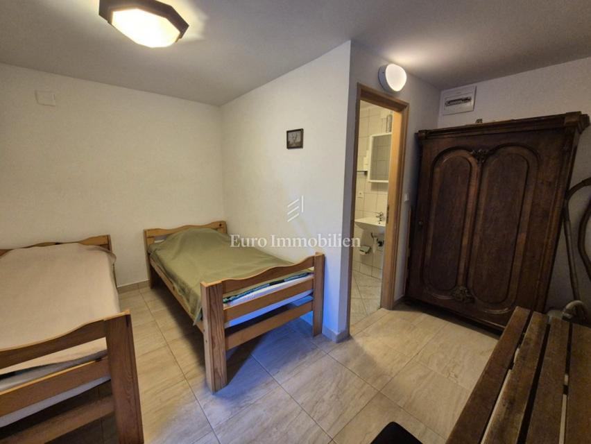 Prizemlje – Dvije spavaće sobe, kupaonica s WC-om, ljetna kuhinja i dodatna stara kupaonica koja se može prenamijeniti u praonicu.