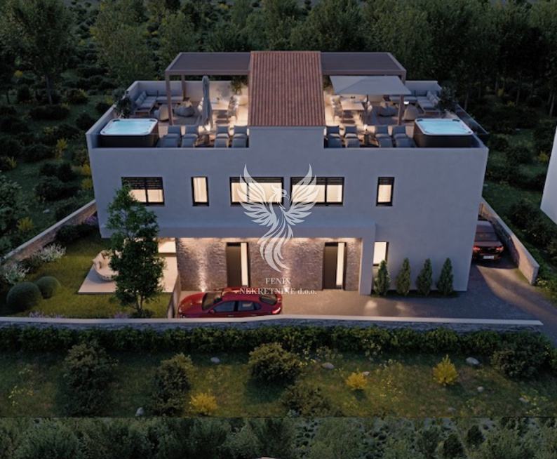 Kuća će se sastojati od prizemnog dijela na kojem će se nalaziti ulazni prostor, wc, spremište, prostrani dnevni boravak s blagovaonom i kuhinjom, izlaz na terasu i vrt i stubište s kojim se dolazi do prvog kata na kojem će se nalaziti hodnik, kupaonica, tri spavaće sobe, od kojih je jedna zamišljena kao master soba s walk-in ormarom, ali koji se može prenamijeniti u dodatnu kupaonica i stubišta koje vodi do krovne terase na kojoj će se nalaziti jacuzzi.