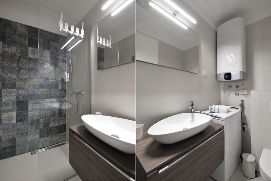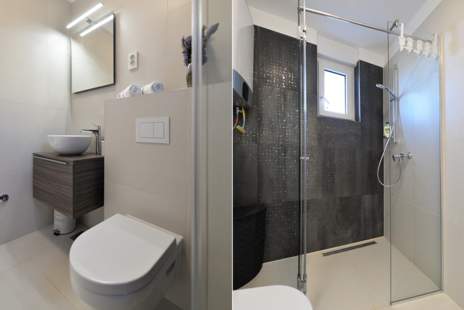 dvije spavaće sobe sa vlastitim kupaonicama. Apartman je opremljen klima uređajem.