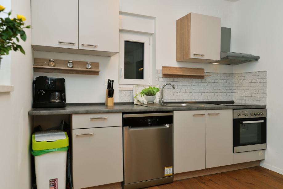 Sam apartman sastoji se od hodnika, prostranog dnevnog boravka sa kuhinjom i blagovaonicom i