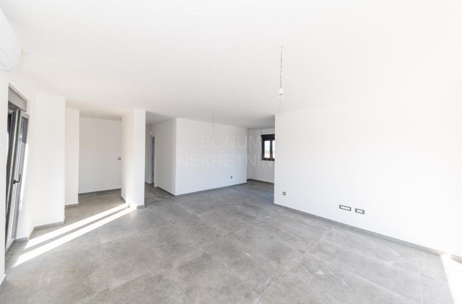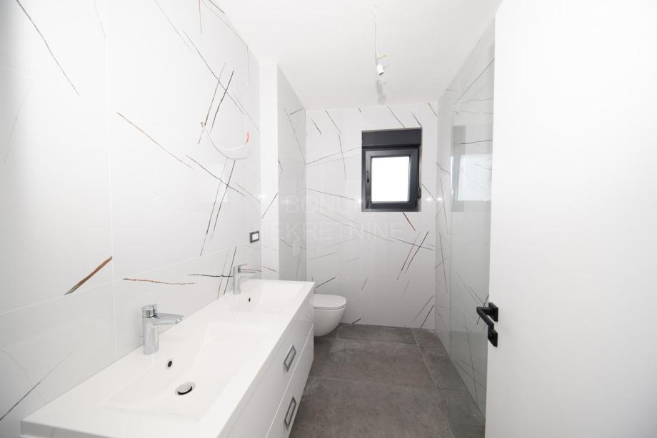 Penthouse se sastoji od ulaznog dijela, hodnika, kupaonice, tri spavaće sobe, od kojih jedna ima vlastitu kupaonicu, te praonice. Sve sobe imaju izlaz na terase površine 13,49 m² i 11,04 m². Prostrana kuhinja s blagovaonom i dnevnim boravkom čini cjelinu s izlazom na veliku terasu od 45,57 m². Uz penthouse dolaze i dva vanjska parkirna mjesta. Ovaj apartman predstavlja savršen spoj modernog dizajna, udobnosti i vrhunske lokacije, i predstavlja odličan izbor za odmor ili stanovanje tijekom cijele godine.
