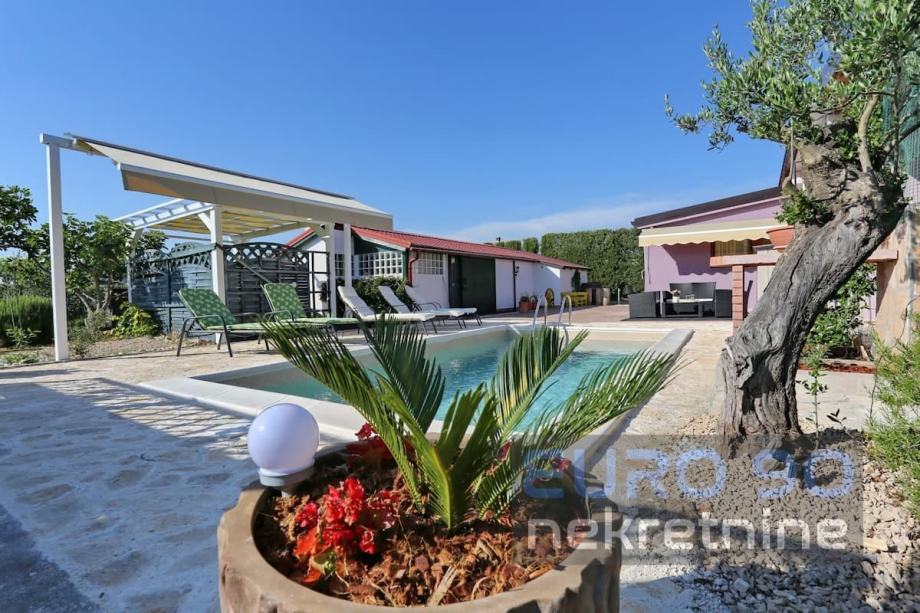 Prodaju se dva mala, specifična objekta s bazenom i velikom okućnicom od 1000 m2 u mjestu Murvica 10-ak km od Zadra.