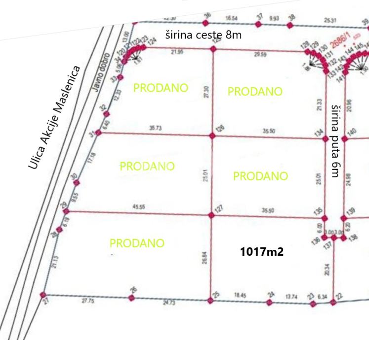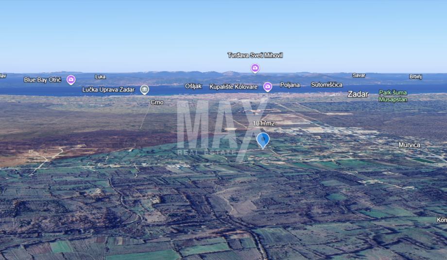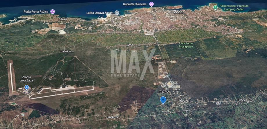 Murvica (Zadar) - građevinski teren od 1017m2, pravilnog oblika s pristupnim putem. Lokacija terena je idealna za gradnju obiteljske kuće ili kuće za odmor.Priključak za struju je u blizini.U blizini je već početa gradnja novih objekata.