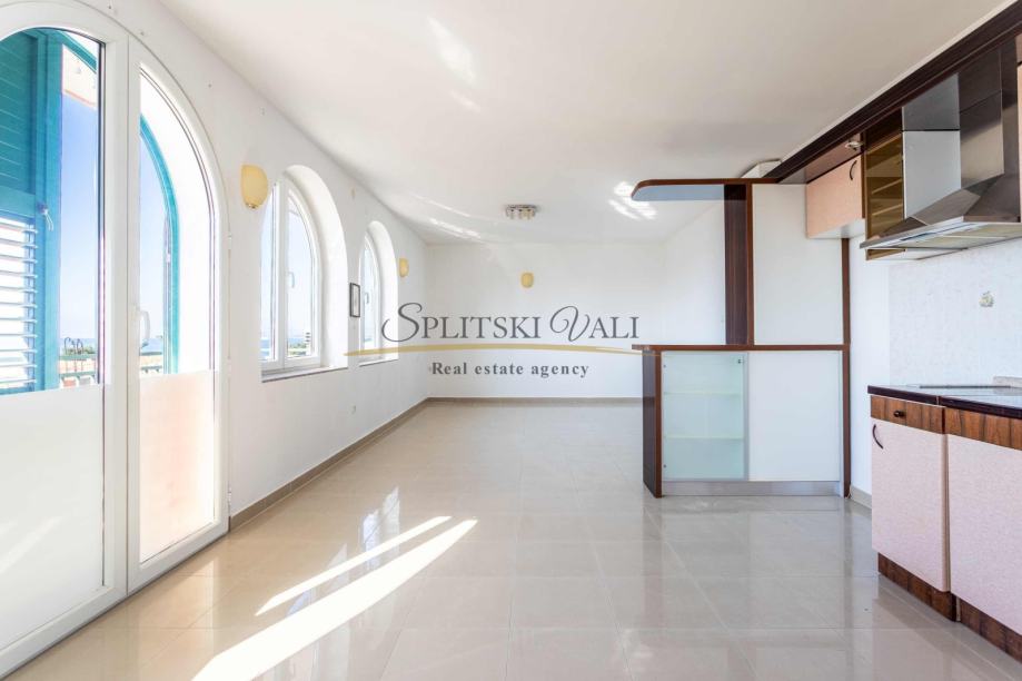 Na zadnjoj etaži nalazi se potkrovlje bez pregrada, koje nudi mogućnost prilagodbe prema vašim željama i potrebama. S terase ovog kata pruža se prekrasan pogled na more. Stanovi na prva tri etaže spremni su za useljenje odmah, dok potkrovlje čeka na vašu kreativnost.