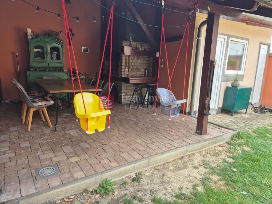 Uz kuću se nalazi pomoćni objekt (cca 10 m2), natkrivena terasa sa zidanim roštiljem (cca 20 m2), podrum te natkriveno parkirno mjesto.