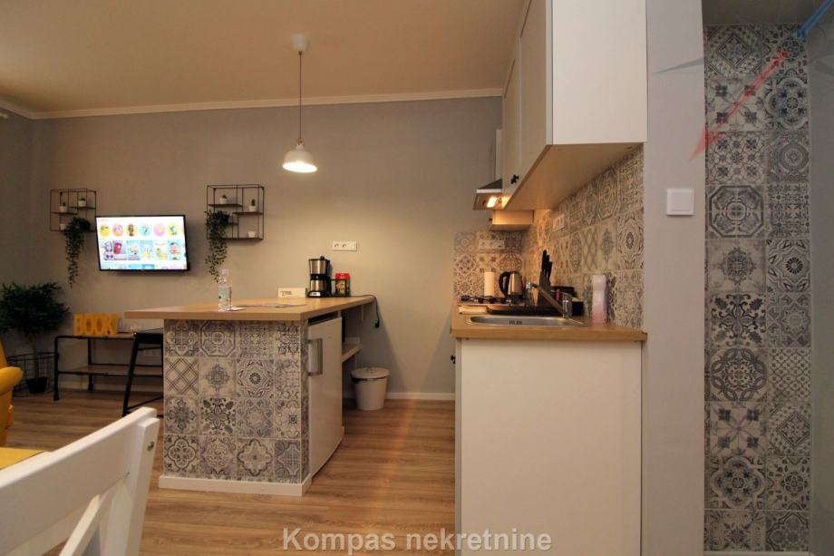Sastoji se od kuhinje, dnevnog boravka, spavaće sobe, kupaonice.