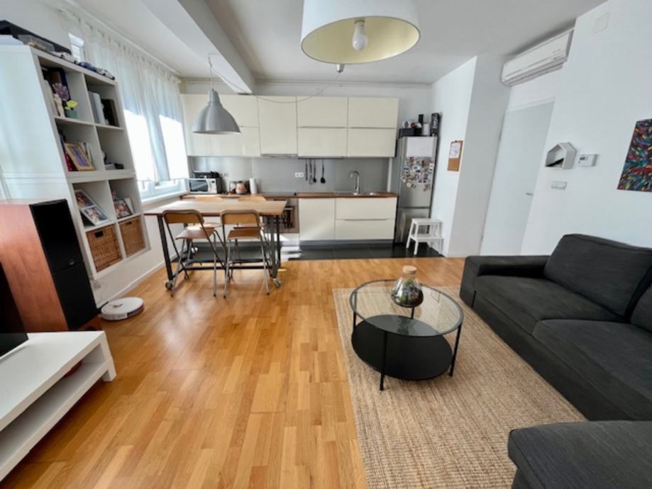 Potpuno opremljen svim aparatima i uređajima: klima, perilica rublja, perilica posuđa, kuhinja (puno drvo + MDF), 2 TV-a, novi hladnjak, nova garnitura