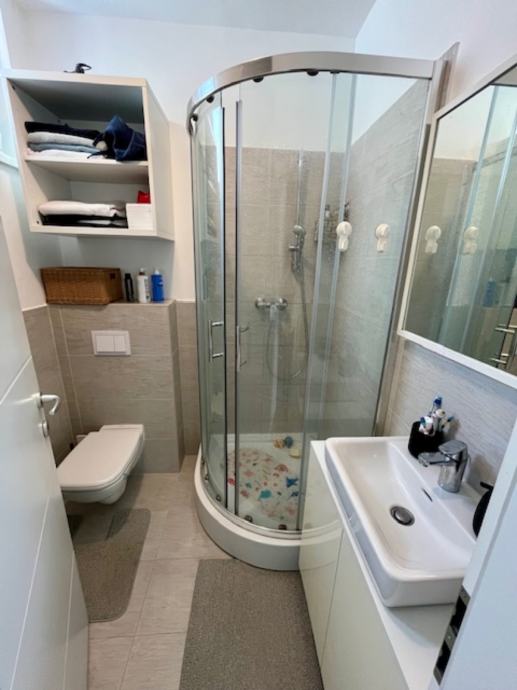 Iznajmljuje se dvosobni stan površine 50 m² na 1. katu manje mirne novogradnje s ukupno 5 stanova. Stan je orijentiran jug – istok, što osigurava obilje dnevnog svjetla.