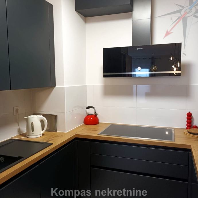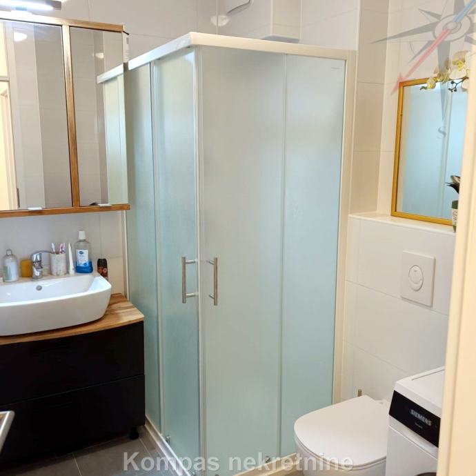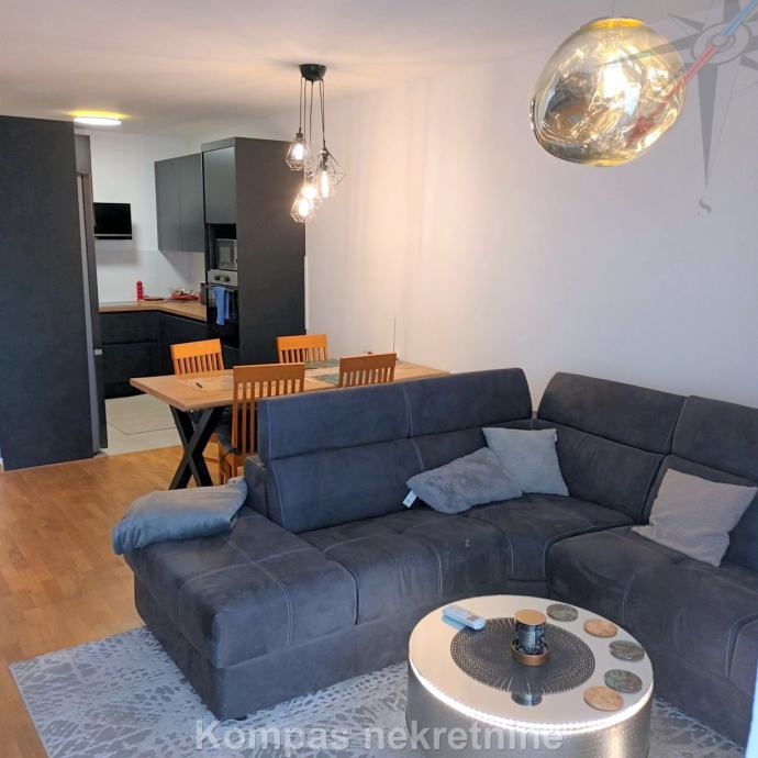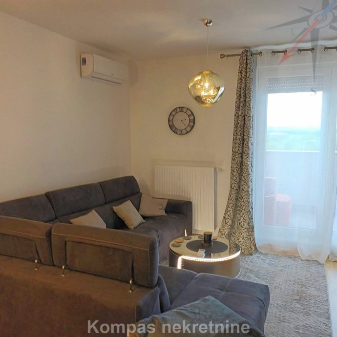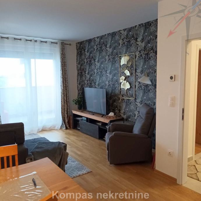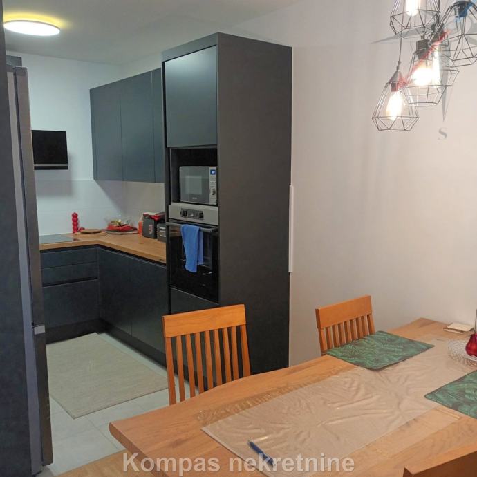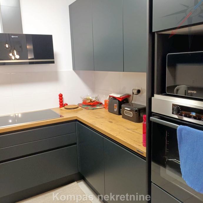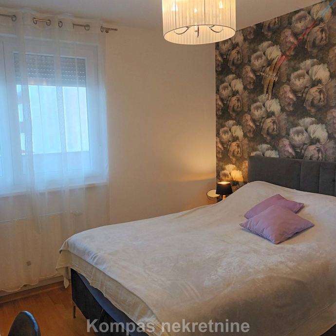 Furnished two-room apartment (66 m²) on the fourth floor of a new residential building with an elevator, Ulica Vilima Korajca. It consists of an entrance hall, kitchen, living room, bedroom, bathroom, loggia. It has a security door, the possibility of optical internet, air conditioning, heating via the city heating plant, new furniture and appliances. The average amount of utilities is about 40 euros. The apartment has a parking space in the underground garage of the building. Located near shopping centers, bus lines 136 (Ljubljanica) and 115 (Črnomerec).