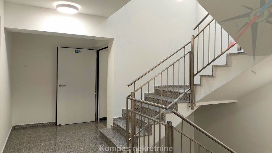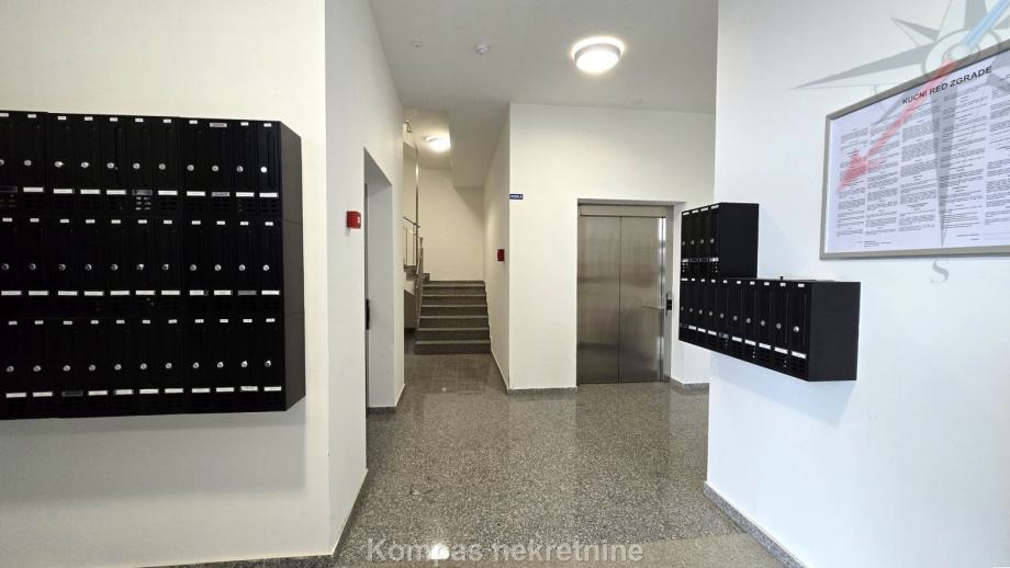 Namješten dvosoban stan ( 66 m² ) na četvrtom katu nove stambene zgrade s liftom, Ulica Vilima Korajca. Sastoji se od ulaznog prostora, kuhinje, dnevnog boravka, spavaće sobe, kupaonice, loggie. Ima protuprovalna vrata, mogućnost optičkog interneta, klima uređaj, grijanje preko gradske toplane, novi namještaj i uređaje. Prosječni iznos režija je oko 40 eura. Stanu pripada parkirno mjesto u podzemnoj garaži zgrade. Stan se nalazi u blizini trgovačkih centara, autobusnih linija 136 (Ljubljanica) i 115 (Črnomerec).