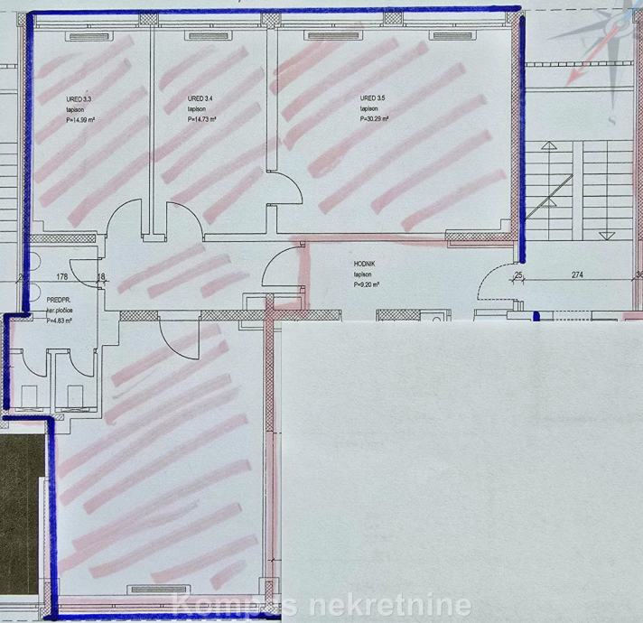 Namješten 3-soban poslovan prostor ( 100 m2 ) na prvom katu stambene zgrade s liftom, Grahorova ulica. Sastoji se od ulaznog hodnika, kuhinje, tri prostorije, toaleta. Prostor ima protuprovalna vrata, mogućnost alarma, optički internet, razvedenu informatičku mrežu, klimatizaciju svih prostorija, plinsko grijanje. U dvorištu zgrade nalaze se parkirna mjesta zaštićena rampom, koje Najmoprimac može koristiti ako ima slobodnih mjesta. Nalazi se u blizini parka i javnog prijevoza. Mogućnost najma i sličnog susjednog 4-sobnog prostora od 110 m2, kao što je prikazano na tlocrtima.