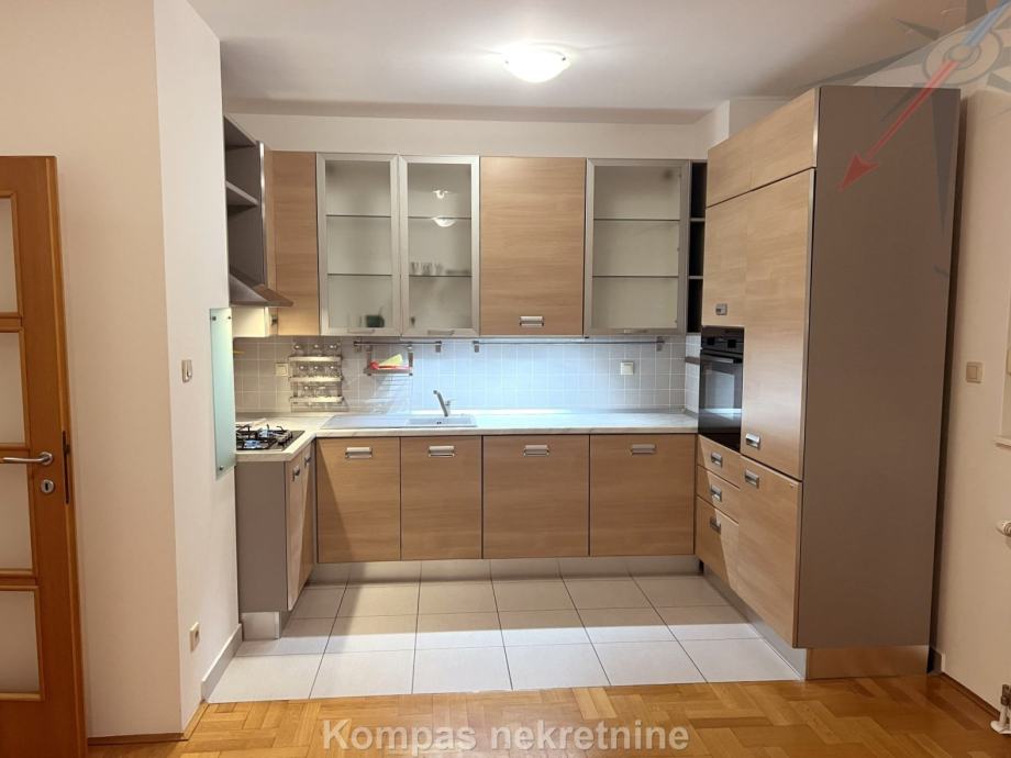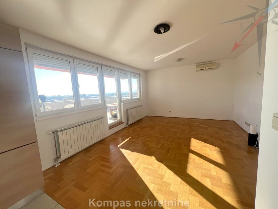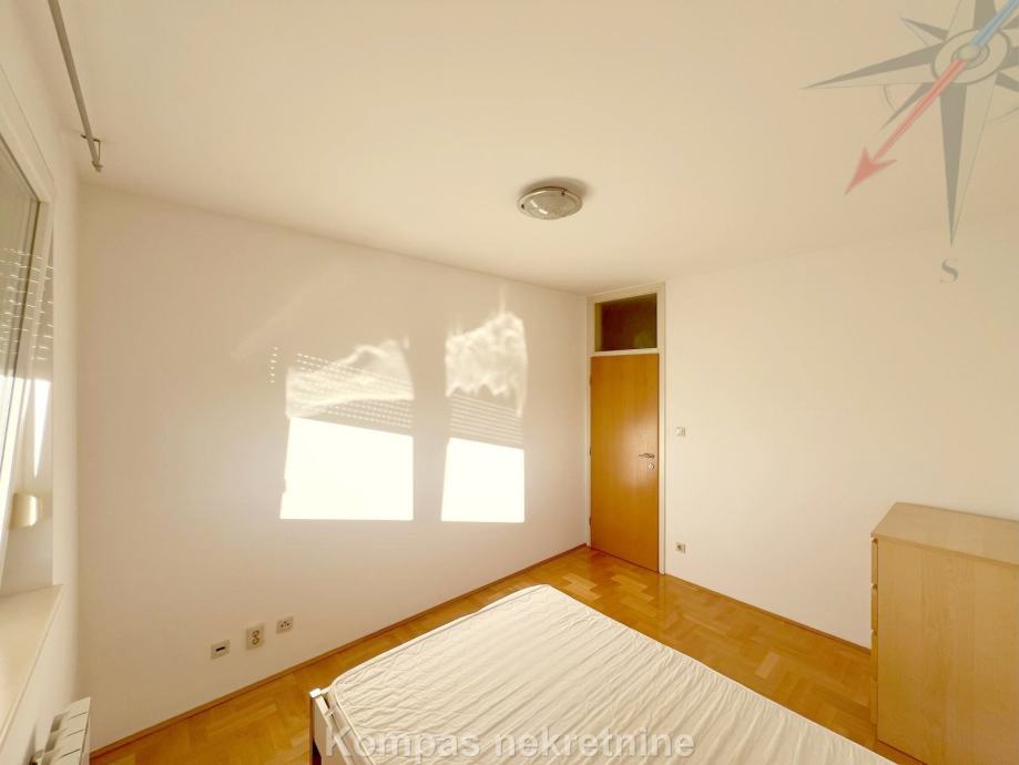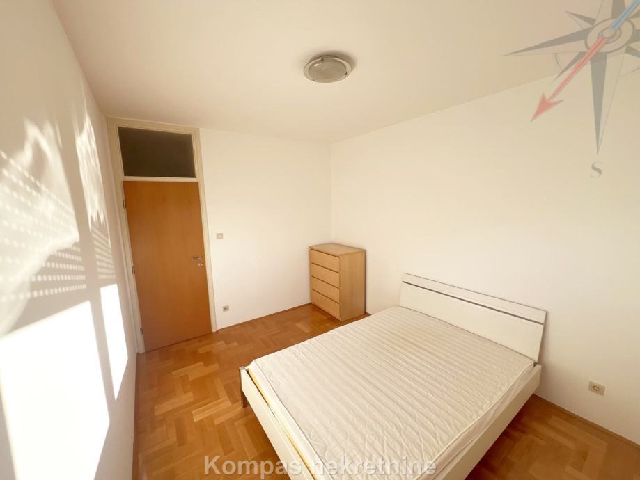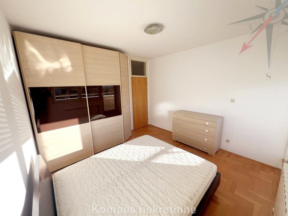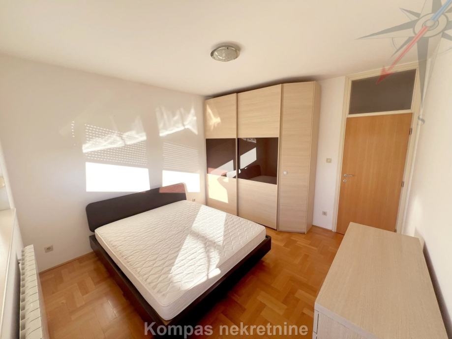 Djelomično namješten 3-soban stan ( 72 m2 ) na petom katu stambene zgrade s liftom, Huzjanova ulica. Sastoji se od ulaznog prostora, kuhinje, tri sobe od kojih najveća ima izlaz na djelomično natkrivenu terasu ( 65 m2 ), hodnika, kupaonice, toaleta, spremišta na terasi ( 1,5 m2 ). Stan ima protuprovalna vrata, klima uređaj, plinsko etažno grijanje, mogućnost optičkog interneta. Pripada mu parkirno mjesto u garaži zgrade. Besplatno parkiranje moguće je na parking oko zgrade. Višak namještaja moguće je maknuti uz nadoplatu. Nalazi se u neposrednoj blizini više autobusnih linija, stanice za vlak, škole, parkova i trgovačkih centara. Stan je moguće unajmiti i za stanovanje.