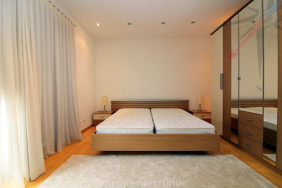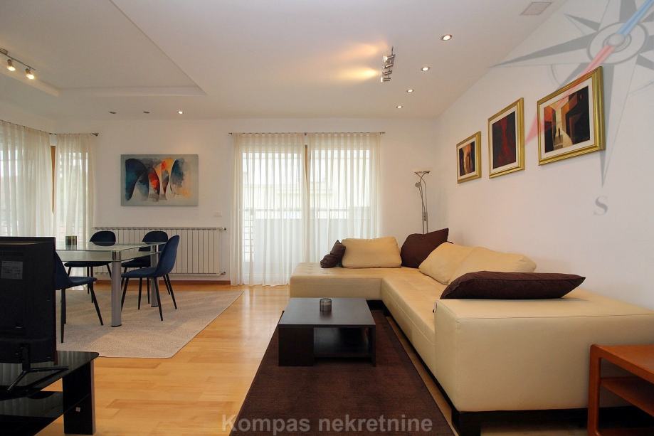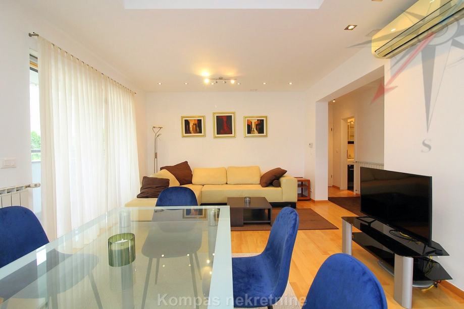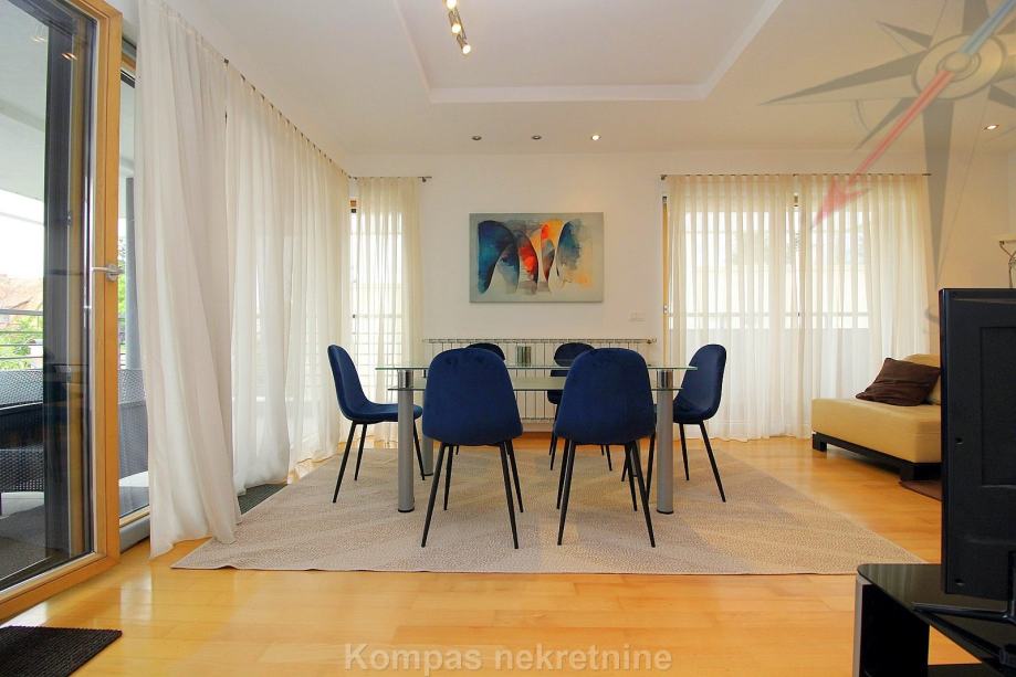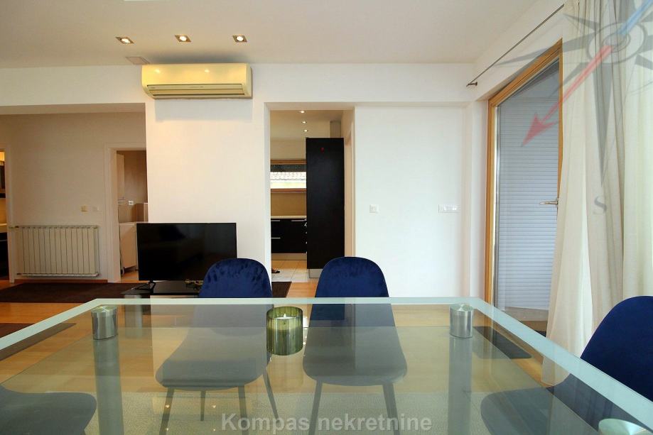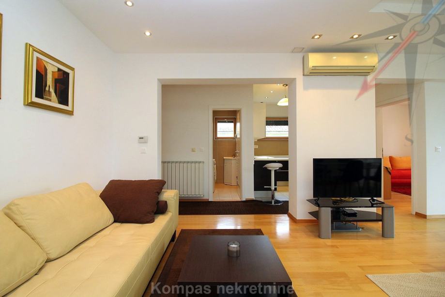 Namješten trosoban stan od 80 m2 na drugom katu manje stambene zgrade bez lifta, Vinkovićeva ulica. Sastoji se od ulaznog prostora, dnevnog boravka, kuhinje, dvije spavaće sobe, kupaonice, toaleta, natkrivene terase ( 25 m2 ). Stan ima plinsko centralno grijanje, klima uređaj, optički internet, uredno spremište u prizemlju zgrade. Držanje kućnih ljubimaca nije dozvoljeno. Mogućnost doplate za garažu i parkirno mjesto u ograđenom dvorištu. Pričuva se ne plaća.