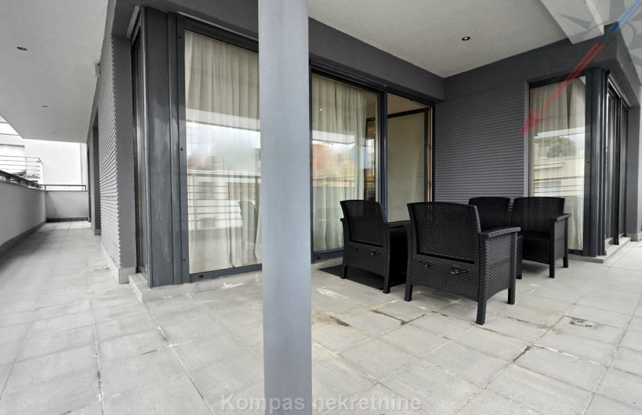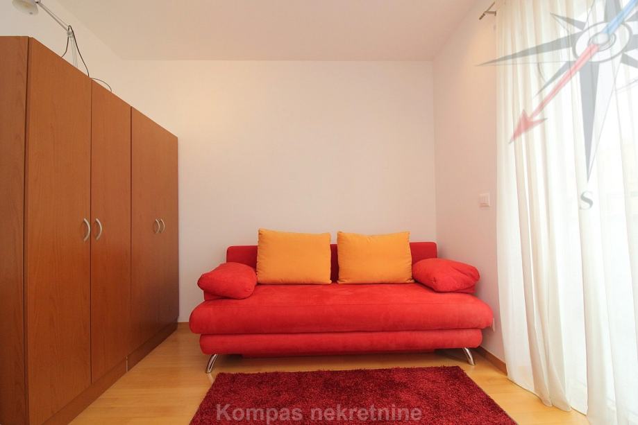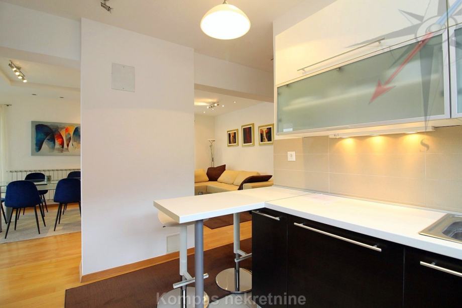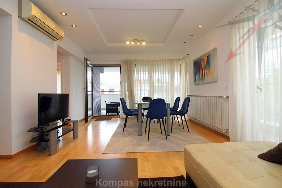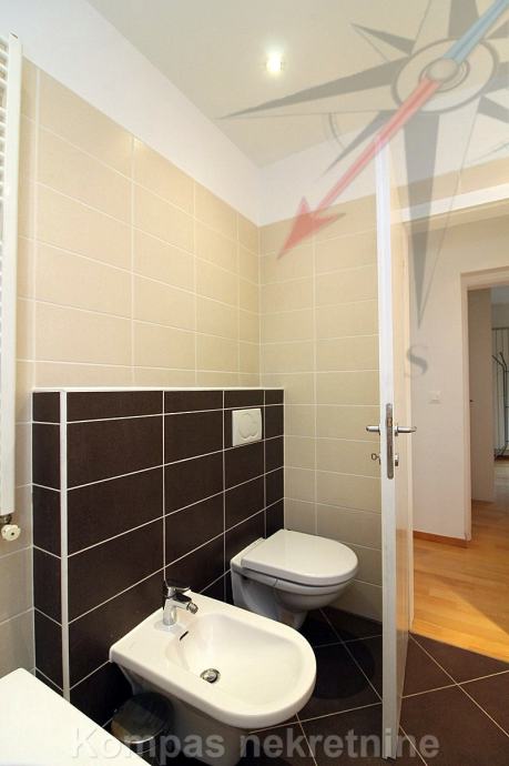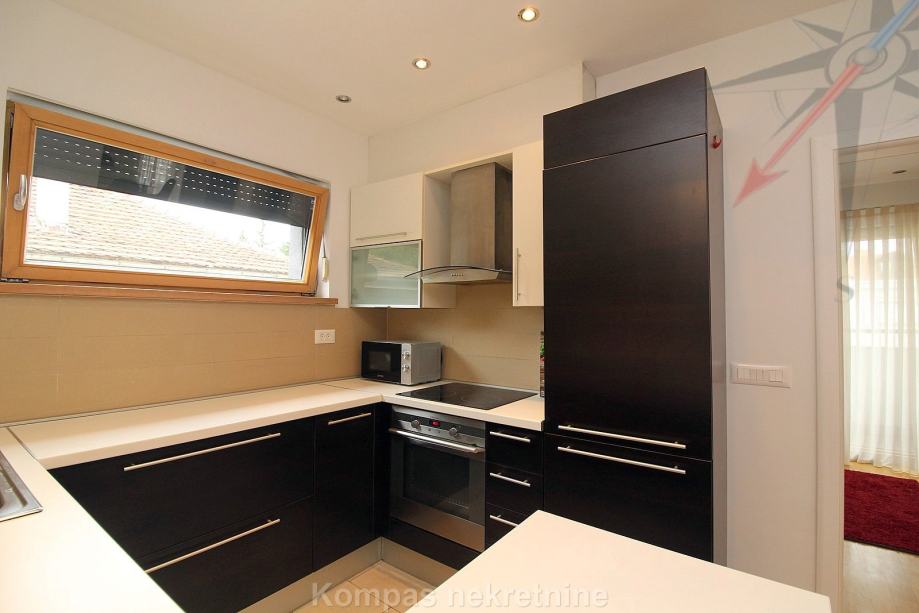 Namješten trosoban stan od 80 m2 na drugom katu manje stambene zgrade bez lifta, Vinkovićeva ulica. Sastoji se od ulaznog prostora, dnevnog boravka, kuhinje, dvije spavaće sobe, kupaonice, toaleta, natkrivene terase ( 25 m2 ). Stan ima plinsko centralno grijanje, klima uređaj, optički internet, uredno spremište u prizemlju zgrade. Držanje kućnih ljubimaca nije dozvoljeno. Mogućnost doplate za garažu i parkirno mjesto u ograđenom dvorištu. Pričuva se ne plaća.