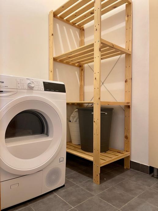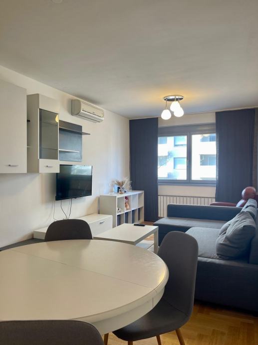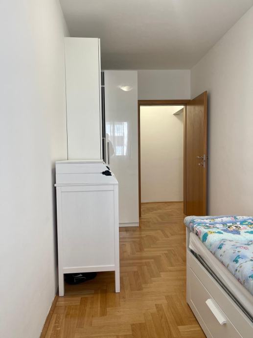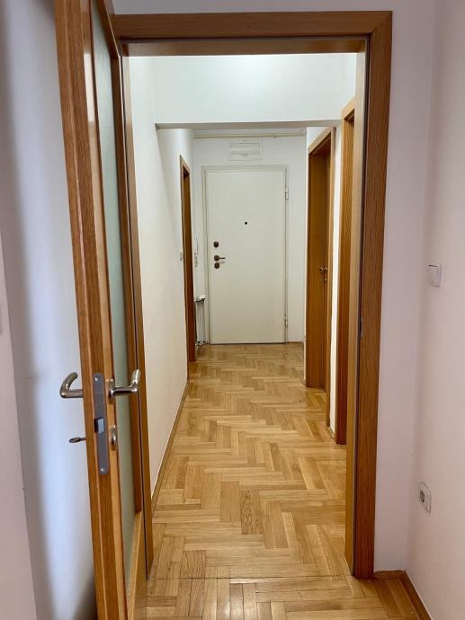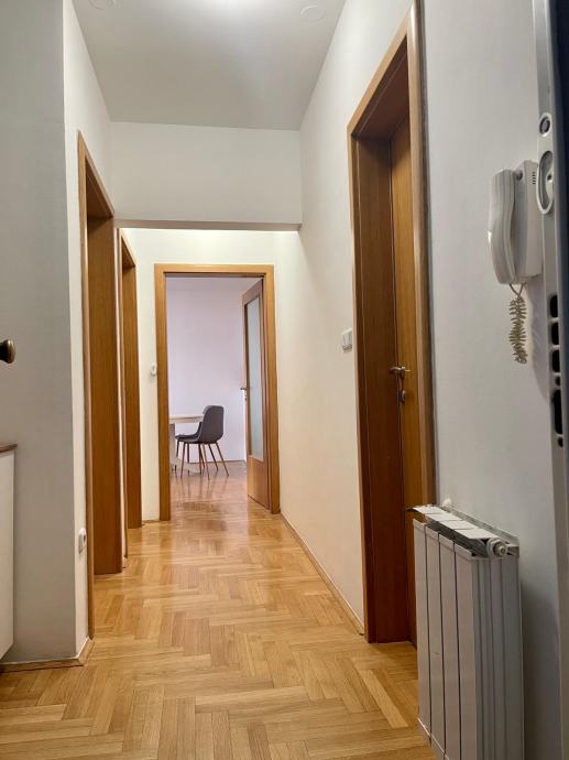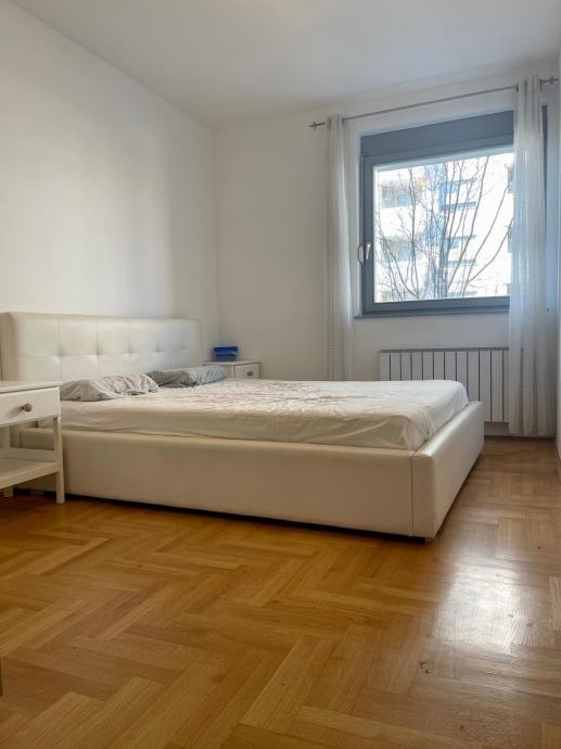 Iznajmljuje se 3-soban stan na Vrbanima - Kuzminečka 55 (prvi red do Jarunskog jezera). Nalazi se na 1. katu zgrade (ukupno 5 katova) te je orijentacija zapad. Sastoji se od ulaznog hodnika, sa desne strane kupaonica s wc-om, lijevo glavna spavaća soba, pa manja spavaća soba. Hodnikom ravno ulazimo u dnevni boravak/kuhinja/blagovaona - open space. Iz kuhinje se ulazi u manju ostavu. Stan je kompletno namješten (perilica rublja, perilica suđa, sušilica veša).