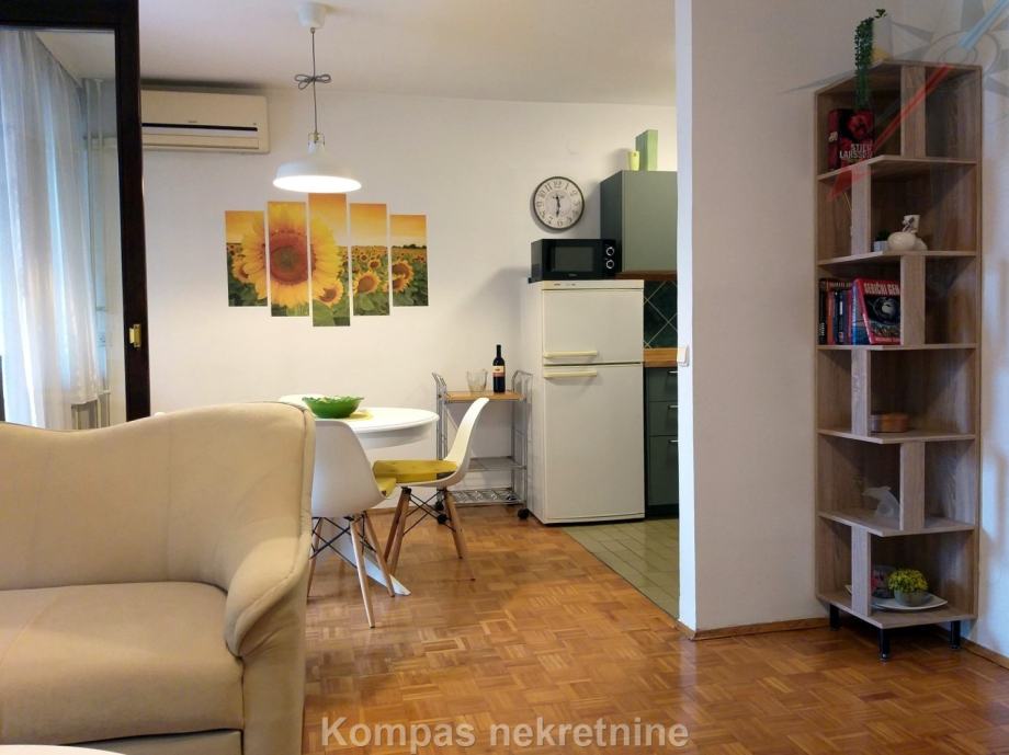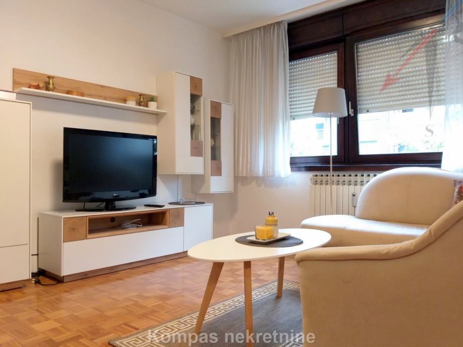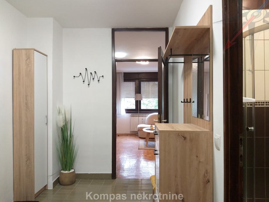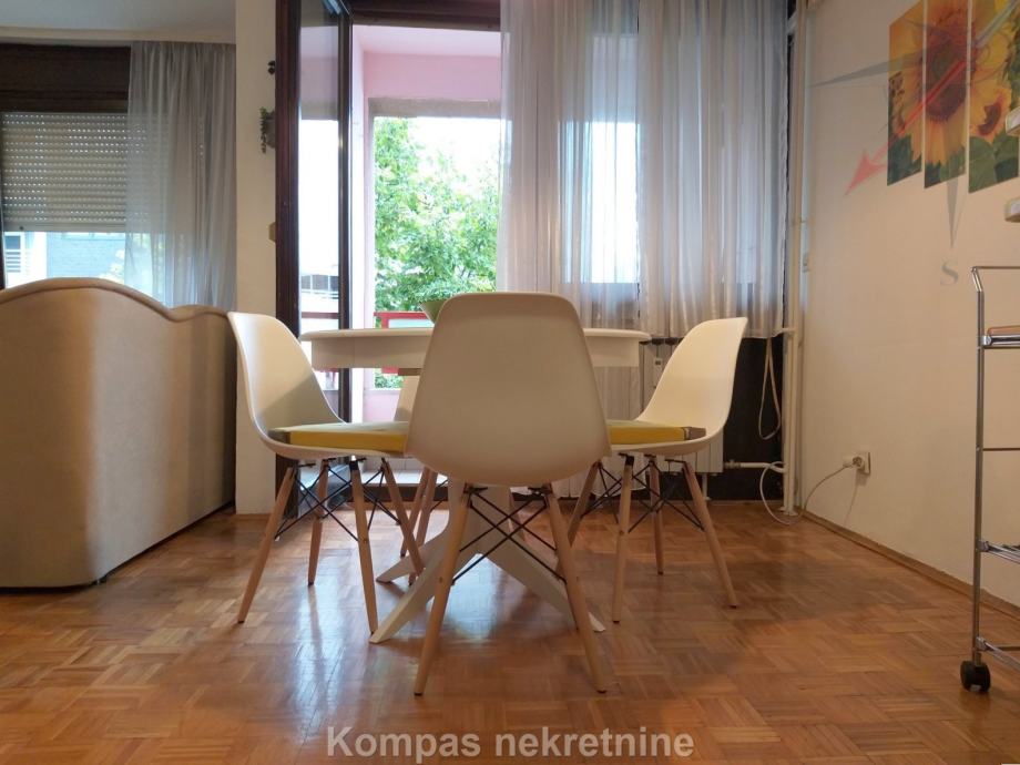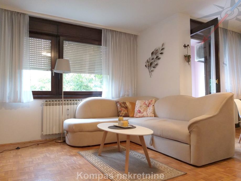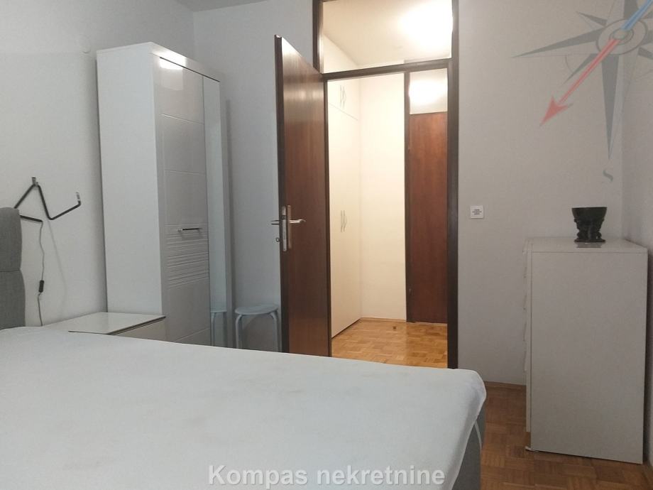 Namješten trosoban stan ( 74 m2 ) na trećem katu stambene zgrade s liftom, Kranjčevićeva ulica. Sastoji se od ulaznog prostora, kuhinje s ostavom, dnevnog boravka s izlazom na loggiu ( 2 m2 ), dvije spavaće sobe, dvije kupaonice. Ima portafon, protuprovalna vrata, mogućnost optičkog interneta, klima uređaj, grijanje preko toplane, novu kuhinju i djelomično novi ostali namještaj. Pričuva za stan je oko 45 eura mjesečno. Parkiranje je moguće na javnom parkingu uz povlaštenu parkirnu kartu za drugu zonu. Nalazi se u blizini vrtića, škole, tržnice Trešnjevka, gradske željeznice i javnog prijevoza.