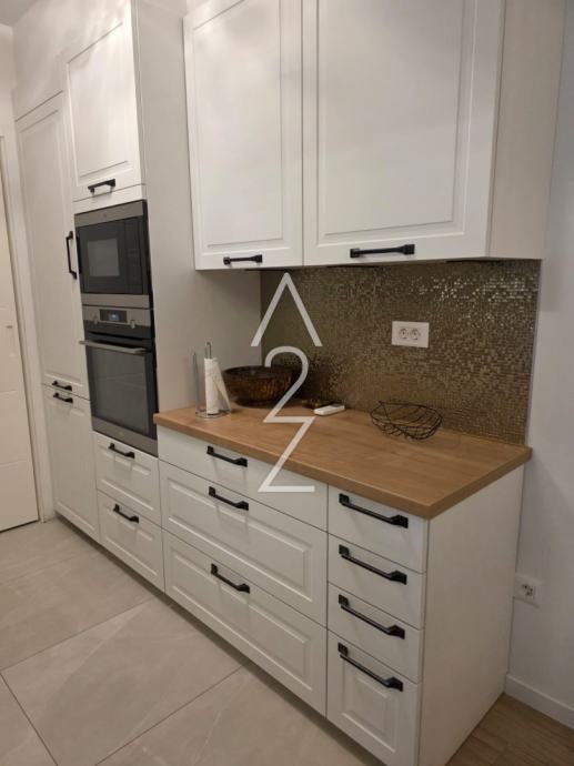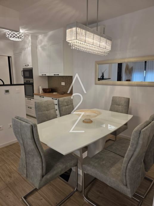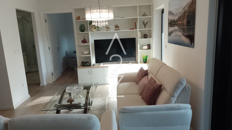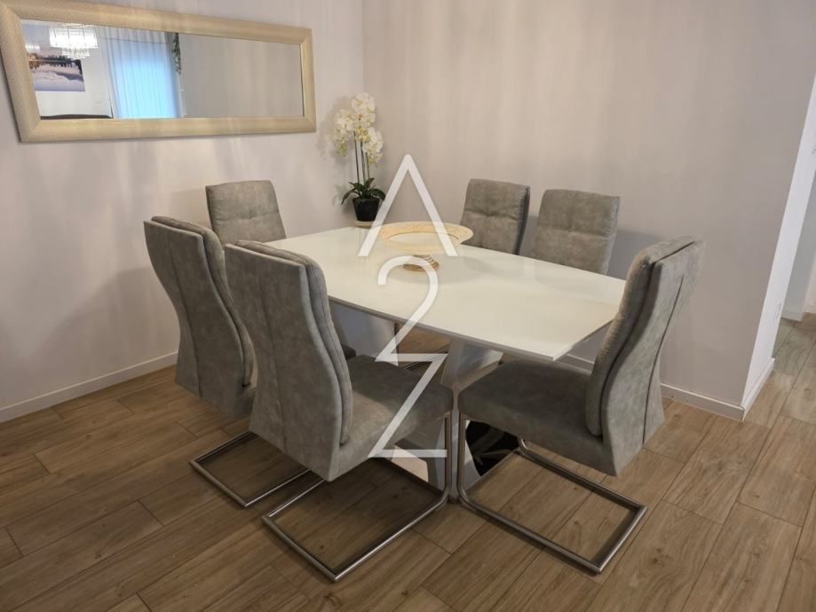 Stan je vrhunski komforan, kompletno namješten, sa svom aparaturom i spreman za momentalno useljenje. Odlike zgrade su da je na sjajnoj lokaciji sa svega nekoliko stambenih jedinica, urednog, prostranog stubišta, sa dizalom, a dodatno je i estetski ugodna. Stan ima podno grijanje putem dizalice topline, žaluzine na električni pogon, francuski prozor u jednoj od spavaćih soba, kuhinju rađenu po mjeri s puno spremišnog prostora, te već spomenuto, kompletno je namješten 2023.godine.