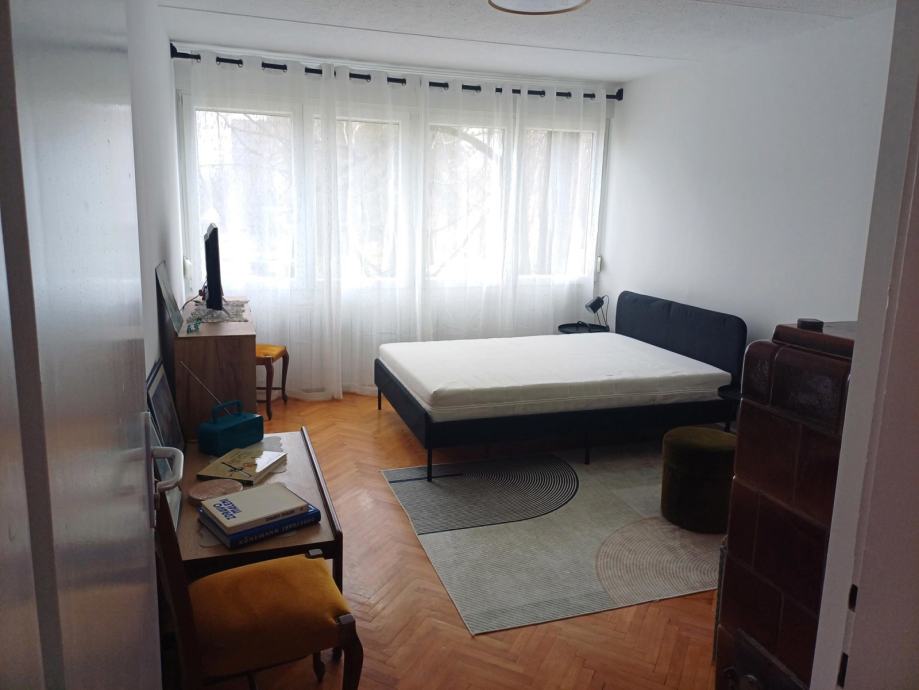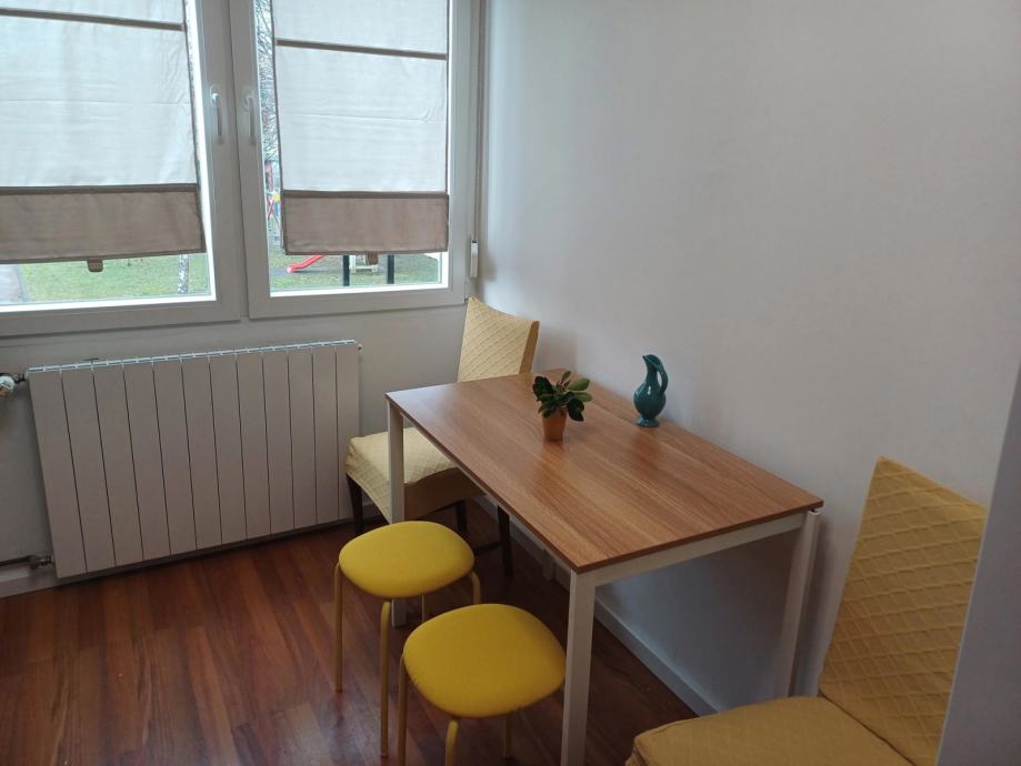 Iznajmljuje se ugodan, svijetao i potpuno namješten dvosoban stan površine 51 m², smješten na 1. katu zgrade u mirnoj, slijepoj ulici okruženoj zelenilom.