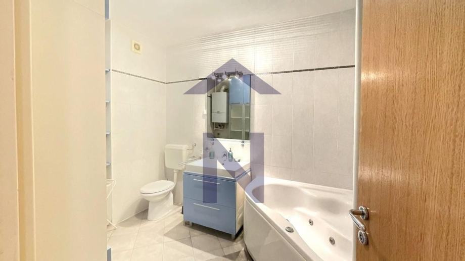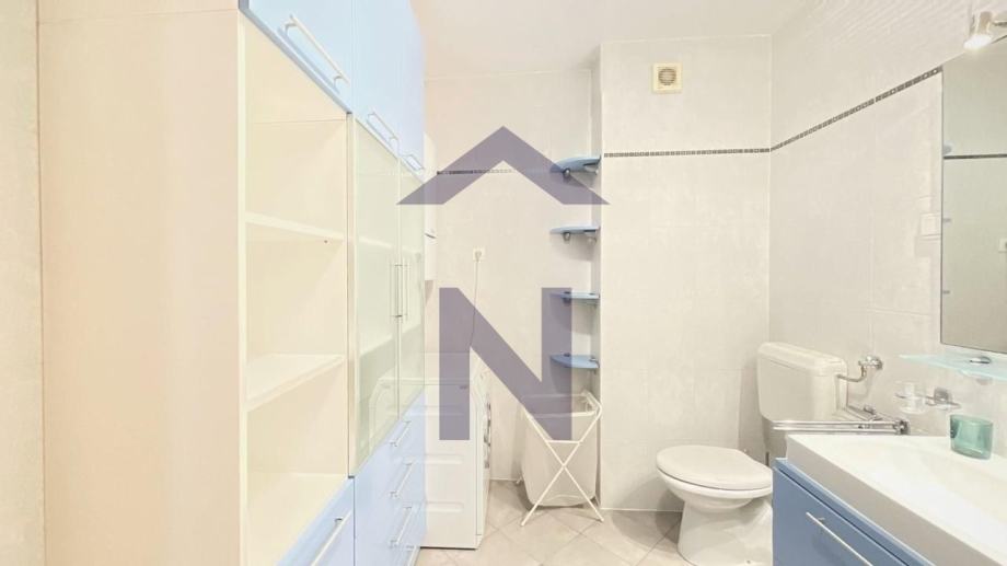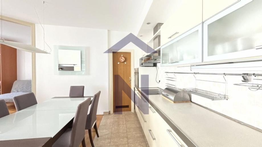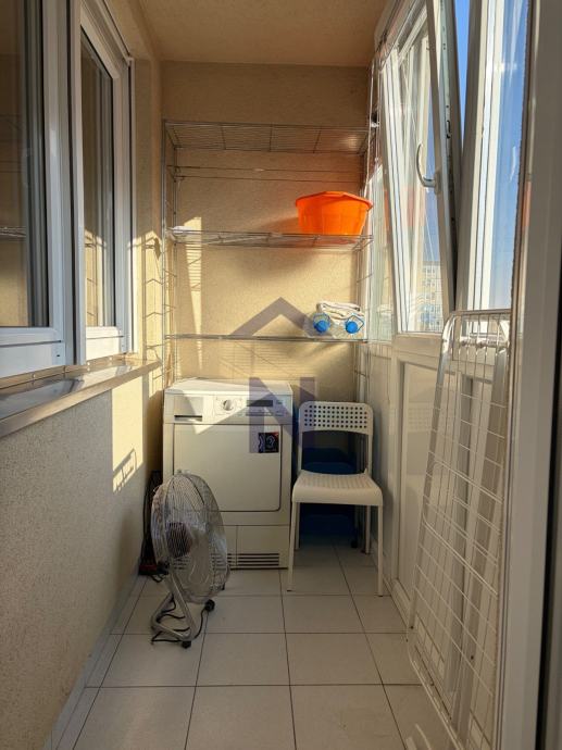 Opremljen je: video portafonom, TV-om, perilicom suđa, perilicom i sušilicom rublja, hladnjakom, napom i pećnicom.