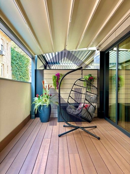 The apartment has 86.57 m2 of living space + a spacious loggia of 30.32 m2 + a storage room in the basement of 2.92 m2 + 2 garage parking spaces.