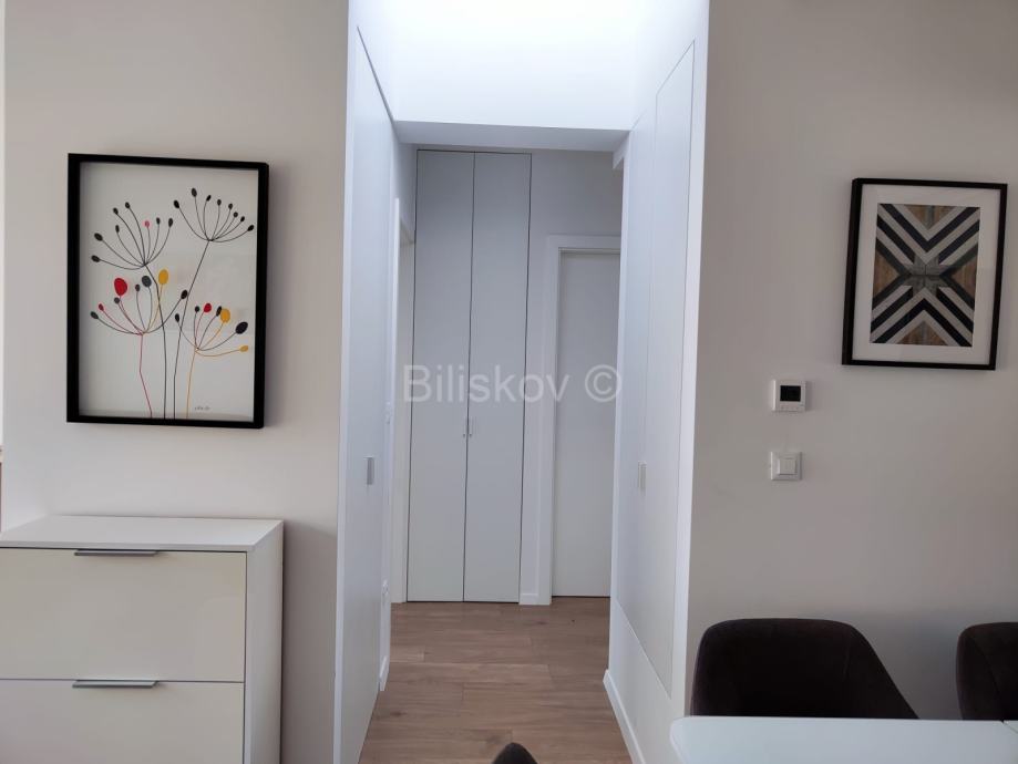Lijepo uređen i osvijetljen dvosoban stan, ukupne neto površine 45 m², nalazi se na 1. katu moderne novoizgrađene kuće.