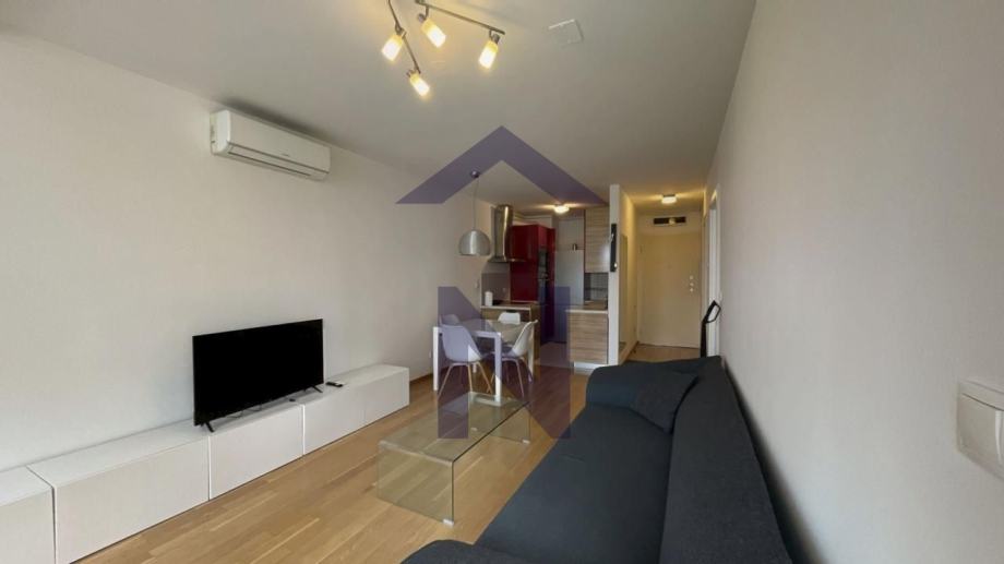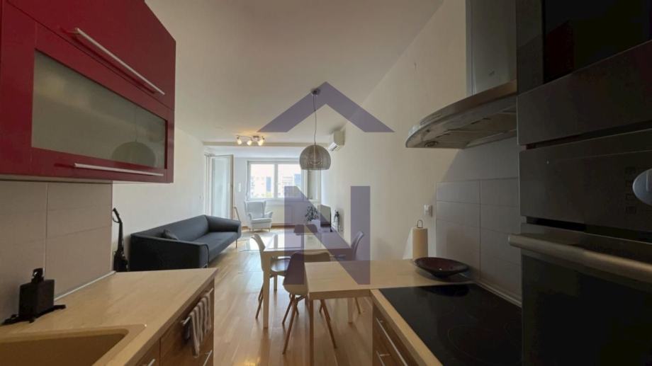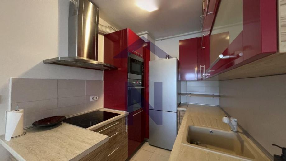 Iznajmljuje se namješten te je opremljen perilicom rublja, perilicom suđa, pećnicom, mikrovalnom pećnicom, indukcijskom pločom, napom, hladnjakom.