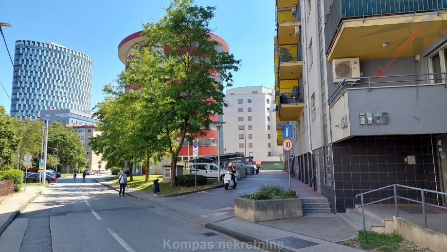 Parkiranje je moguće na površinama oko zgrade, s povlaštenom kartom za drugu zonu. Mogućnost najma parkirnog mjesta ili garaže u zgradi, uz doplatu. Blizina poslovne zone u Radničkoj cesti, javnog prijevoza, jednostavan pristup brzom gradskom cestama.